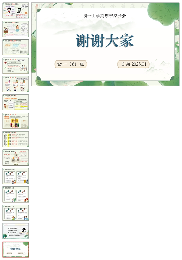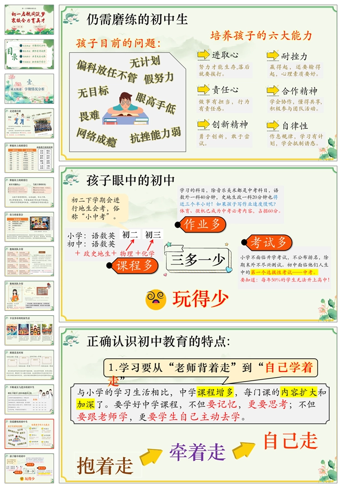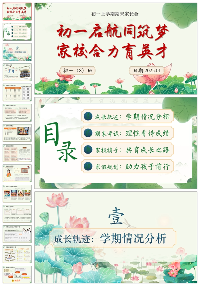 【8290】《初一启航同筑梦家校合力育英才》七年级上学期期末家长会PPT(课件+发言稿+暖场视频)