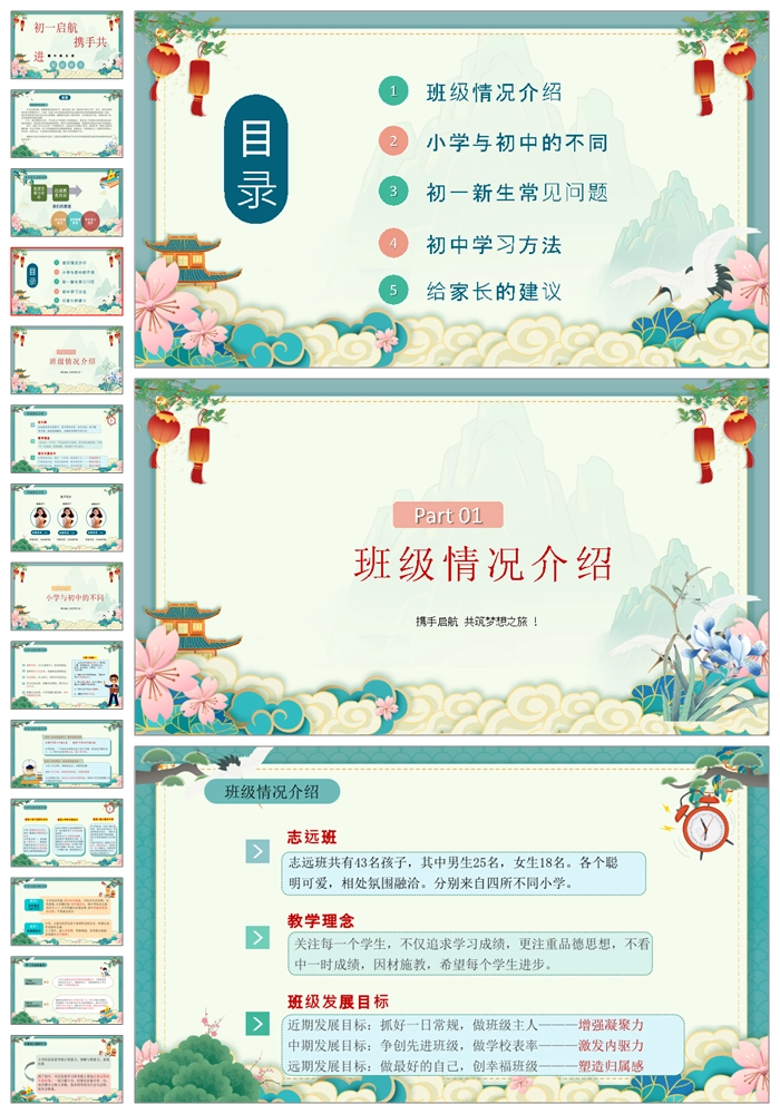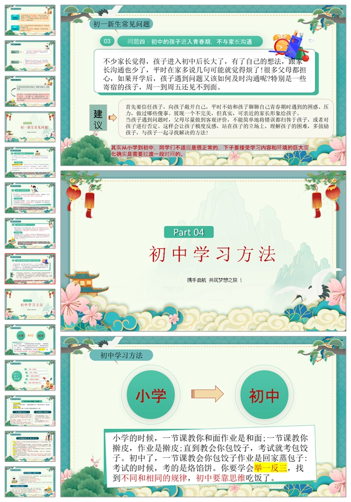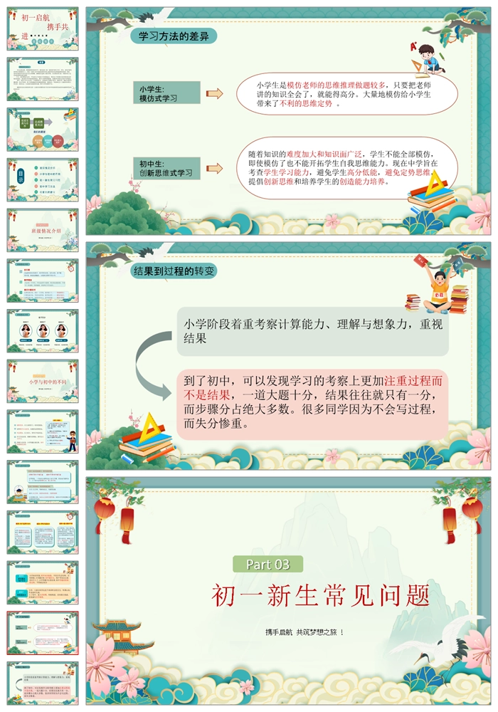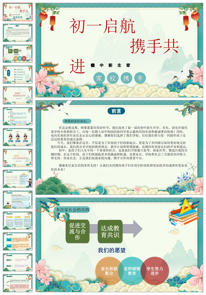【8410】【初一家长会】《初一启航携手共进》初一开学家长会初一新生家长会PPT(课件+发言稿)