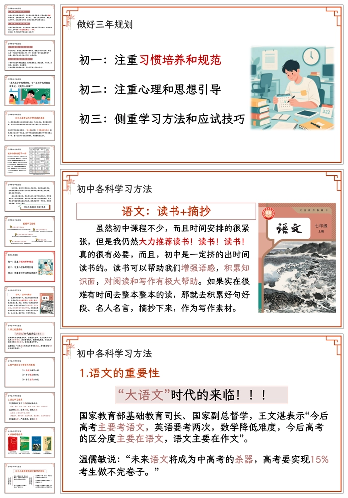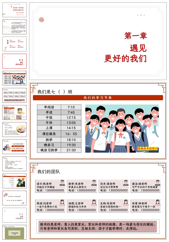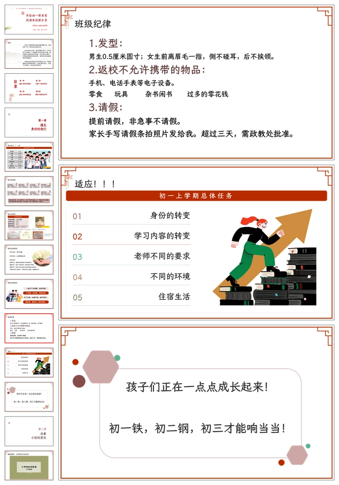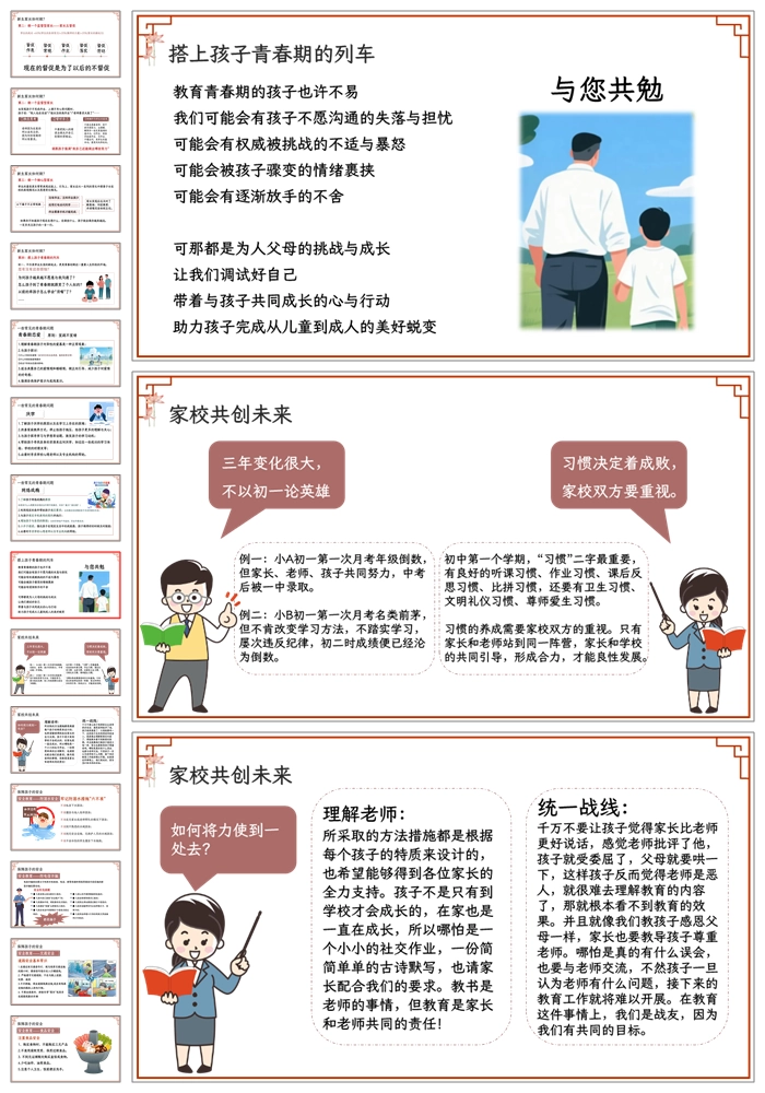 【8552】七年级上学期开学家长会《共绘初一新画卷同谱家校新乐章》初一开学家长会ppt课件+发言稿