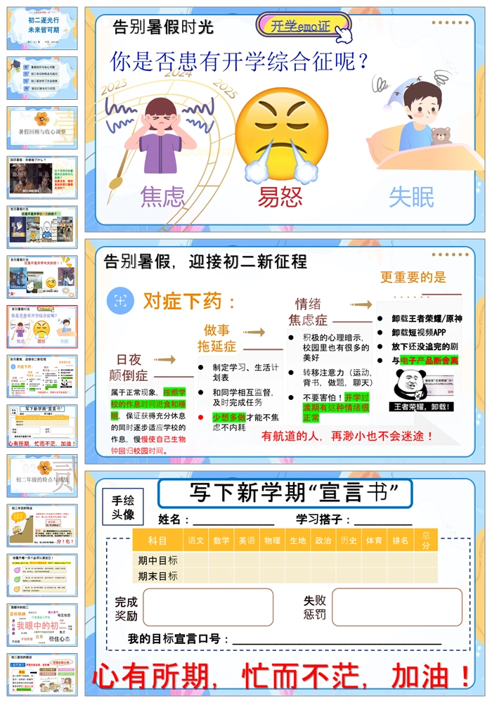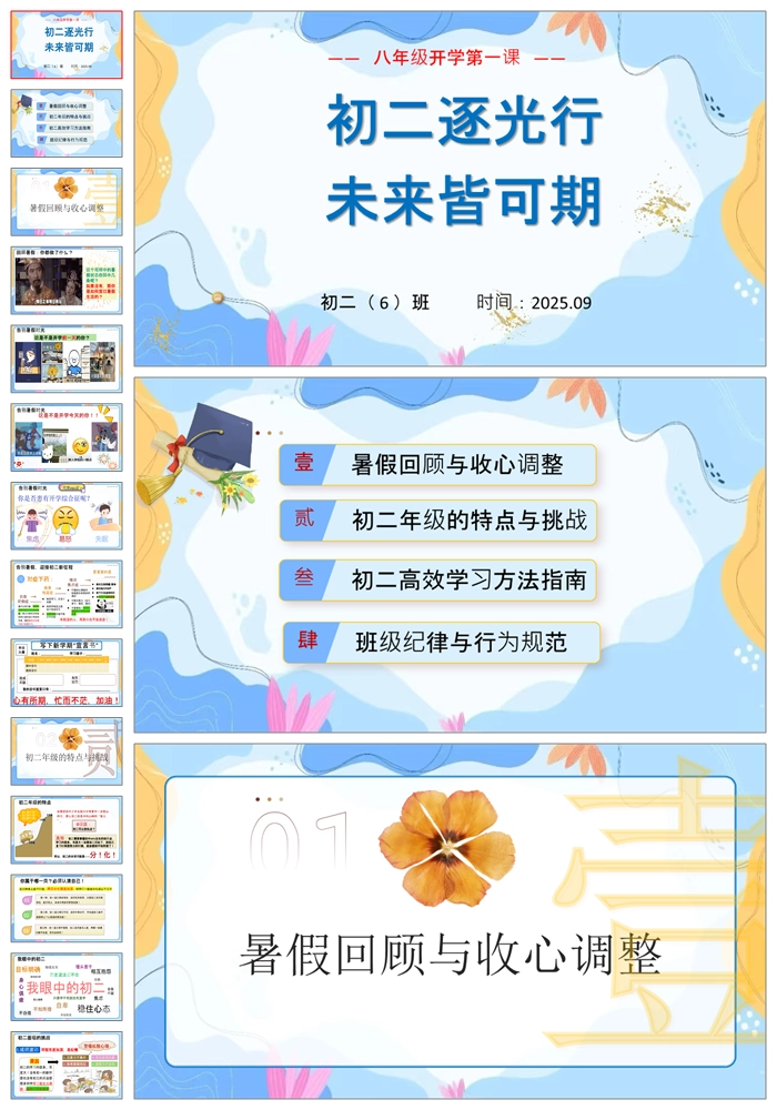 【5053】初二开学第一课《初二逐光行未来皆可期》初二上学期开学第一课PPT课件+逐字稿