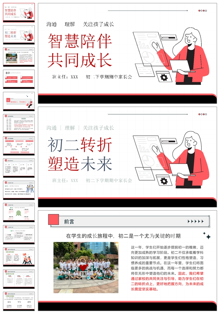 【8099】【初二家长会】《智慧陪伴共同成长》初二下学期期中家长会PPT课件