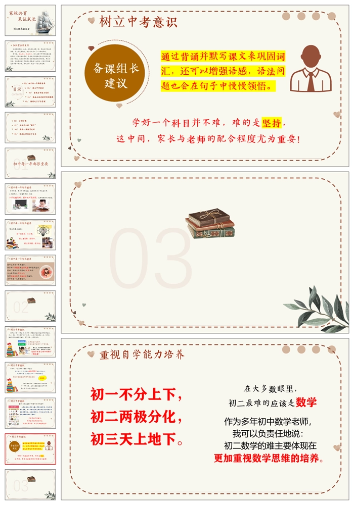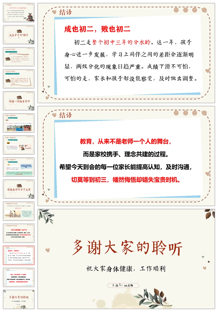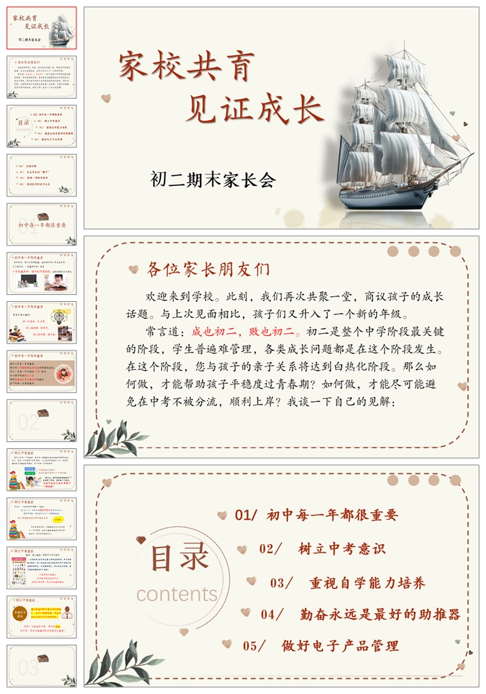 【8379】【初二家长会】【家校共育见证成长】初二期末家长会ppt(课件+发言稿)