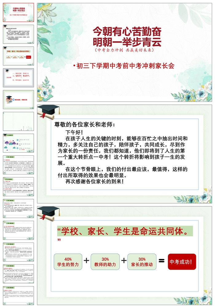 【8090】【初三家长会】《今朝有心苦勤奋明朝一举步青云》初三下学期中考前中考冲刺家长会课件PPT