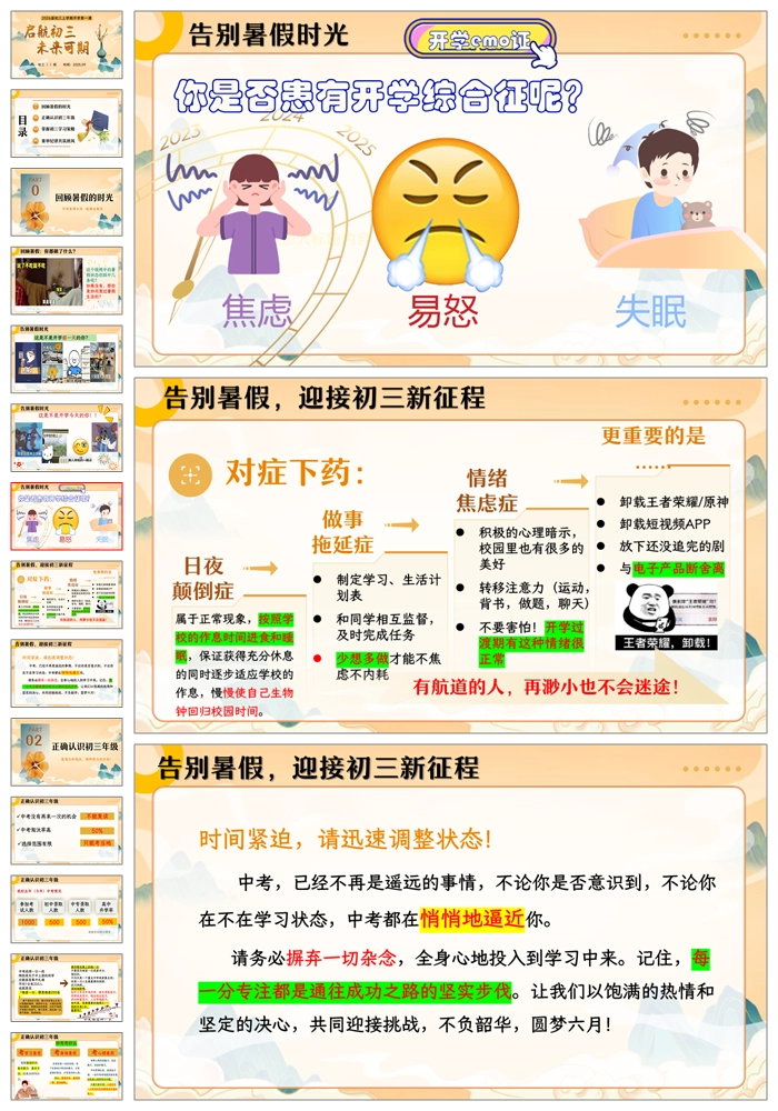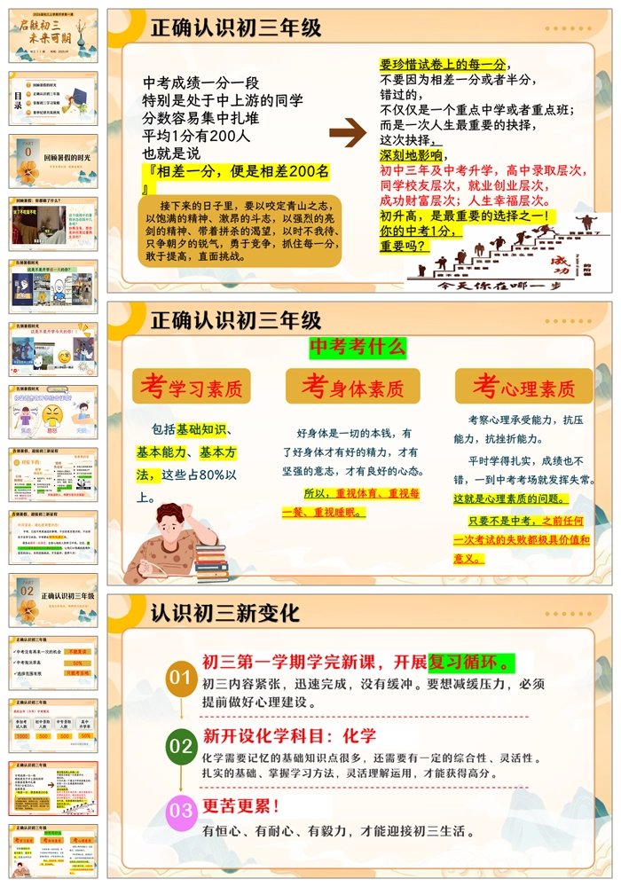 【5052】初三开学第一课《启航初三 未来可期》初三上学期开学第一课PPT课件+逐字稿