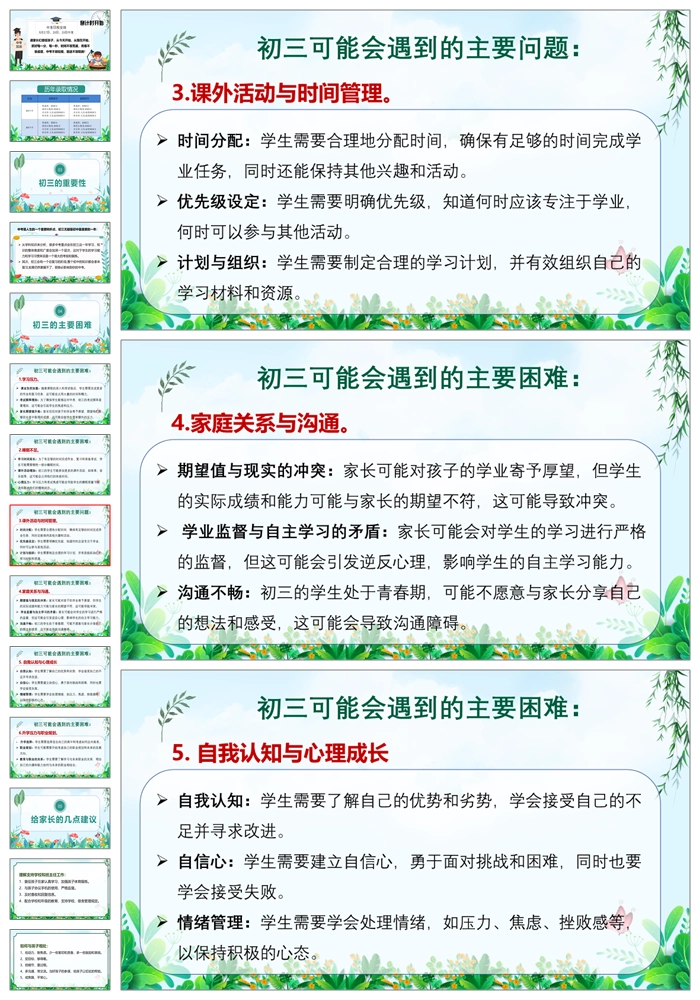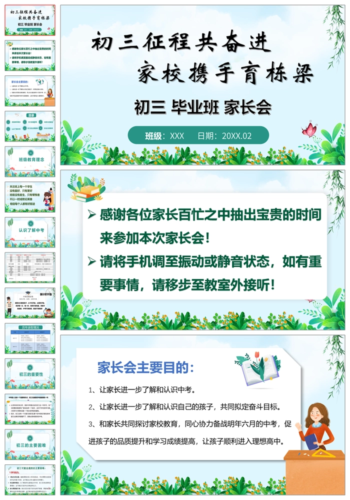 【8275】【初三家长会】《初三征程共奋进家校携手育栋梁》初三开学家长会PPT(课件+发言稿)