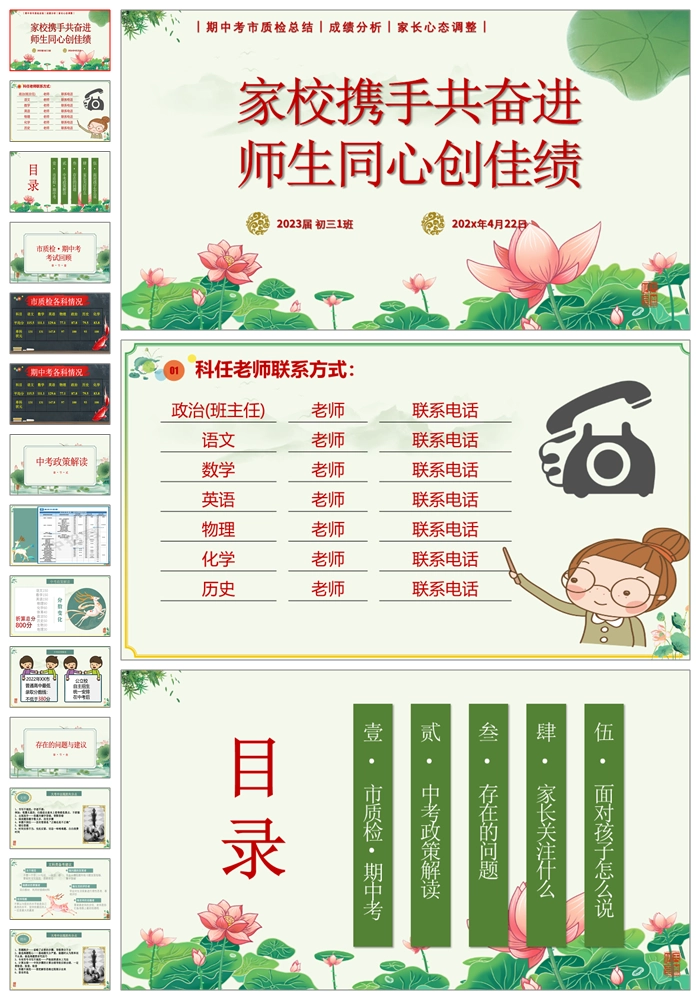 【8277】【初三家长会】《家校携手共奋进师生同心创佳绩》初三下学期最后一次家长会PPT(课件+发言稿)
