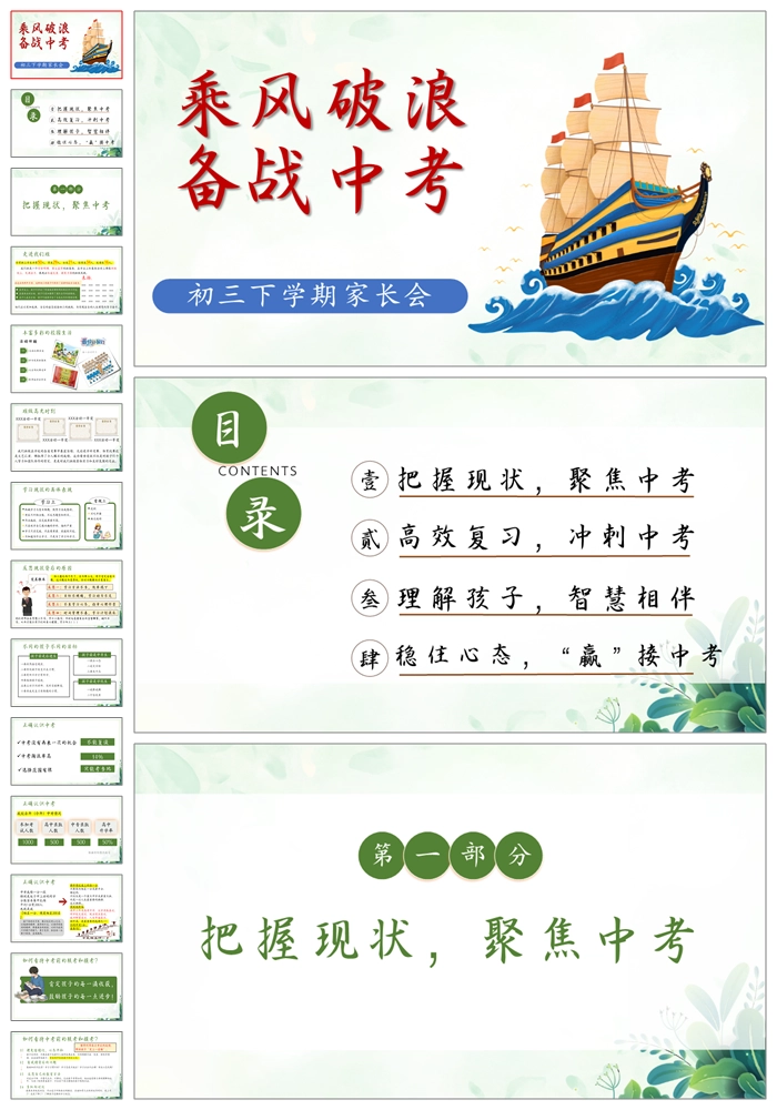 【8337】【初三家长会】《乘风破浪备战中考》初三家长会初三中考家长会PPT(课件+发言稿)