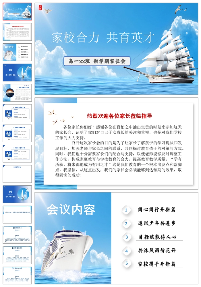 【8118】【高一家长会】《家校合力共育英才》高一期中家长会课件PPT
