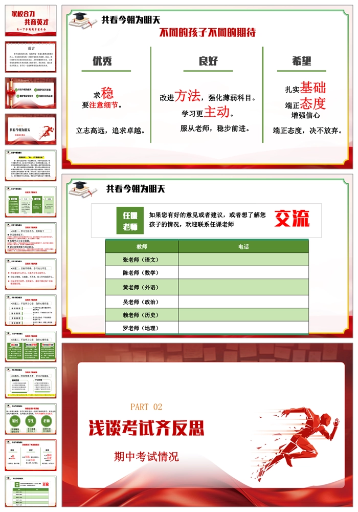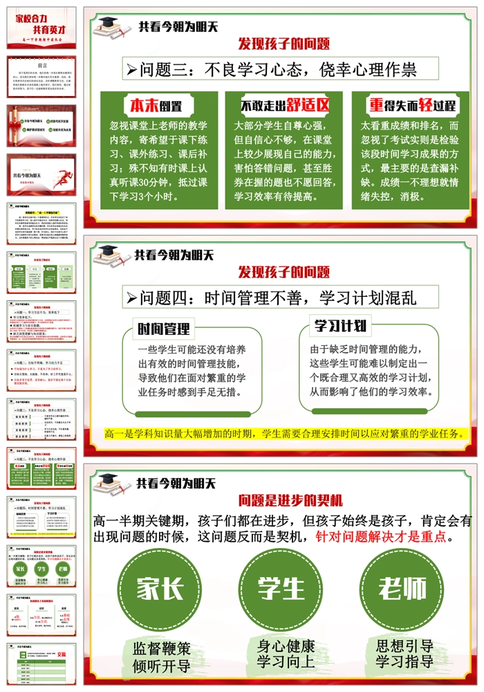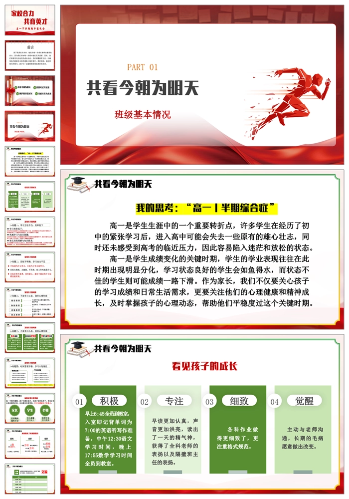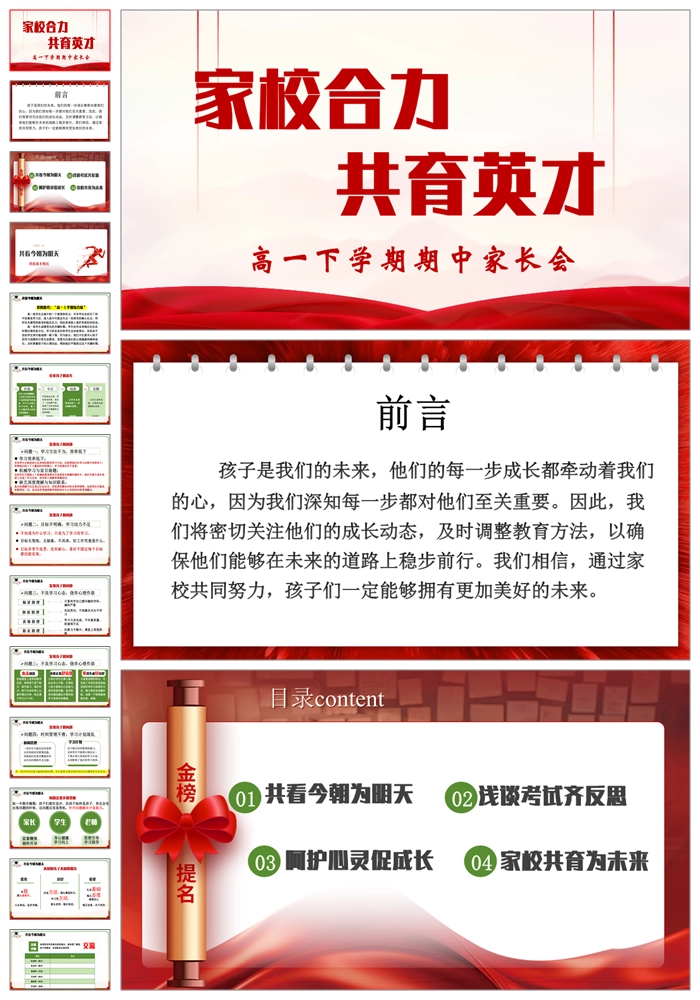 【8341】【高一家长会】《家校合力共育英才》高一下学期期中家长会PPT(课件+发言稿)