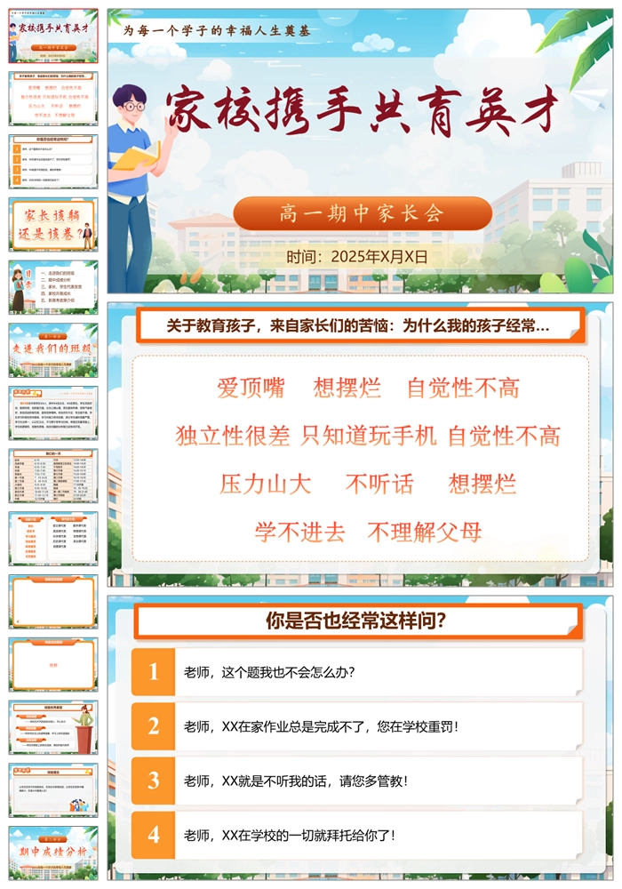 【8357】【高一家长会】高一期中家长会课件《家校携手共育英才》PPT(课件+发言稿)