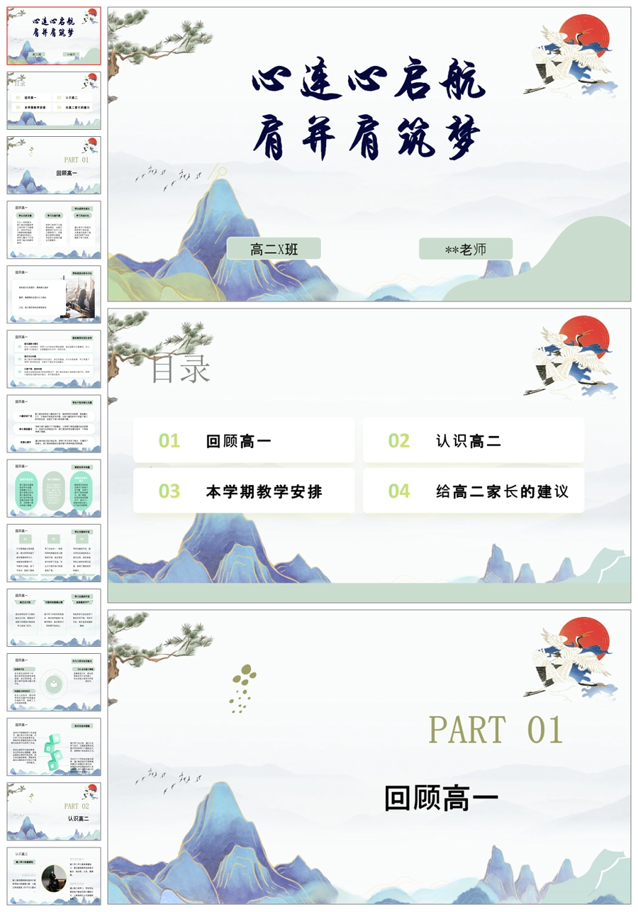 【8142】【高二家长会】《心连心启航肩并肩筑梦》高二上学期开学家长会PPT(课件+讲稿)