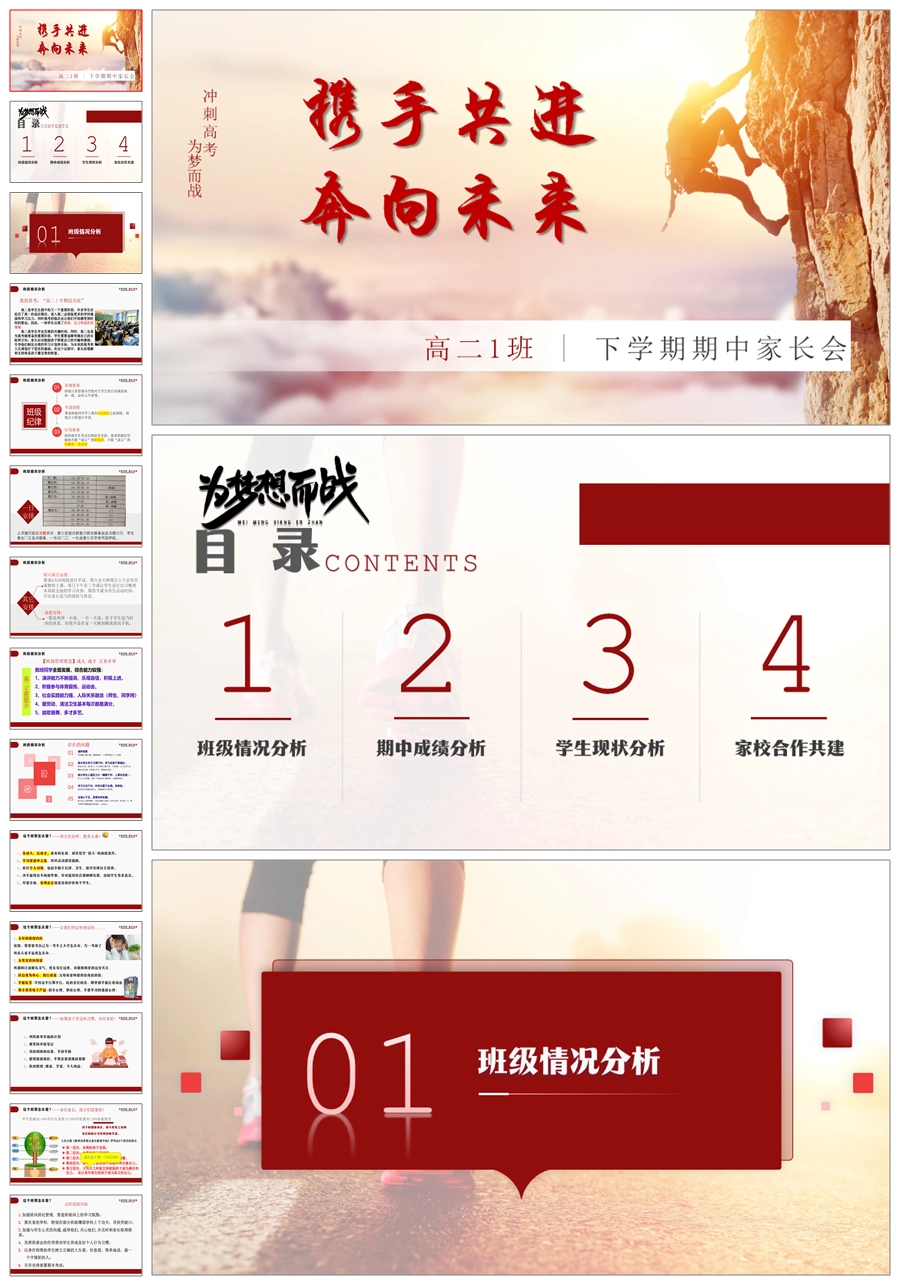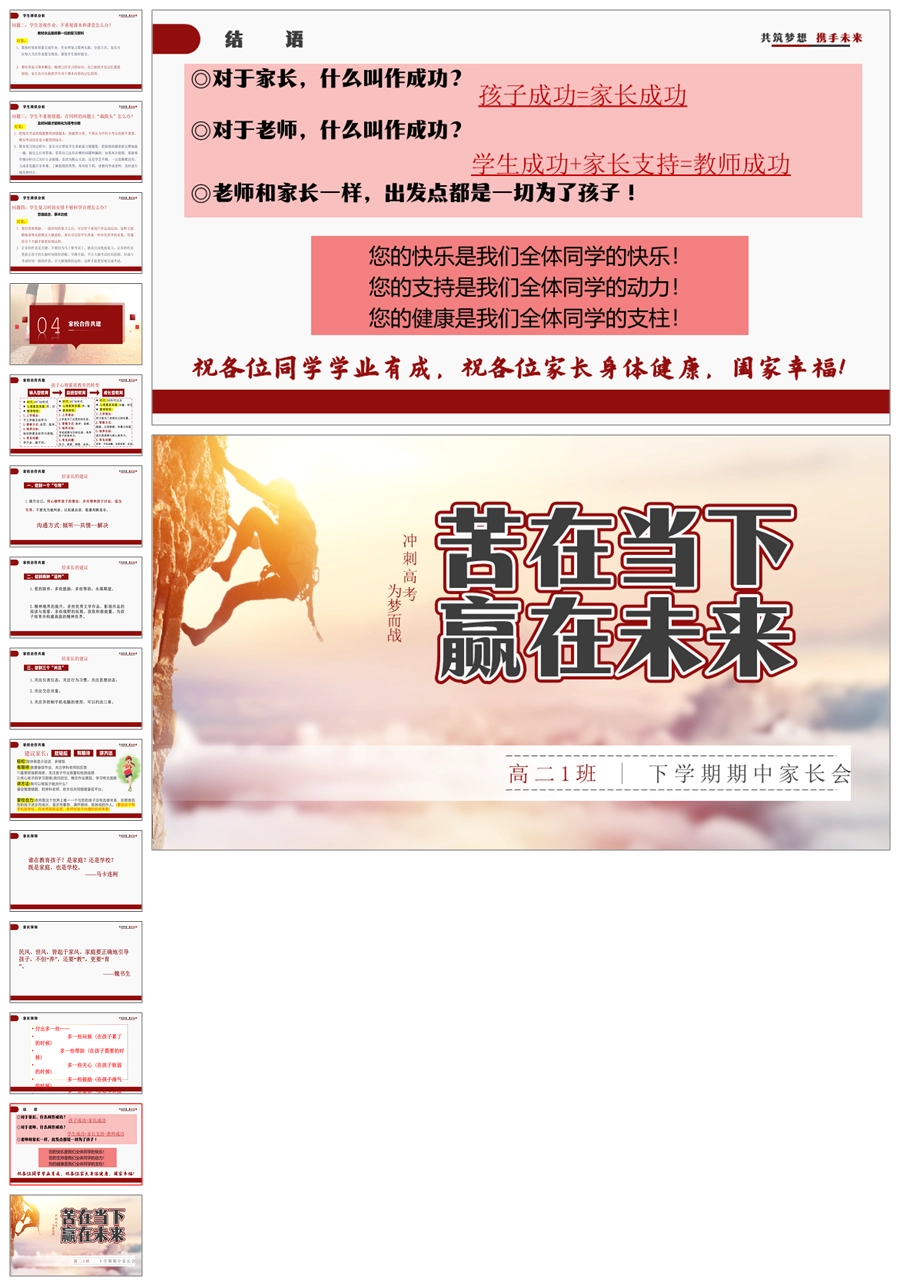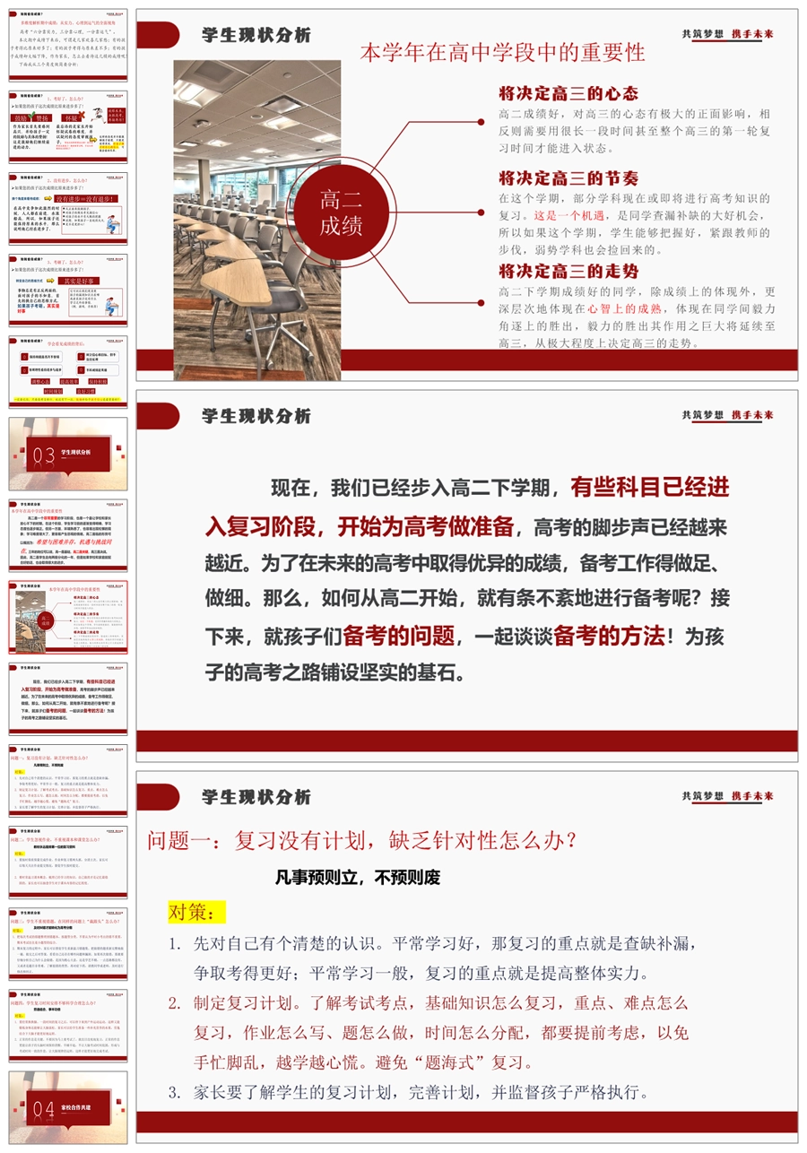 【8163】【高二家长会】高二下学期期中家长会《携手共进奔向未来》PPT课件+讲话稿
