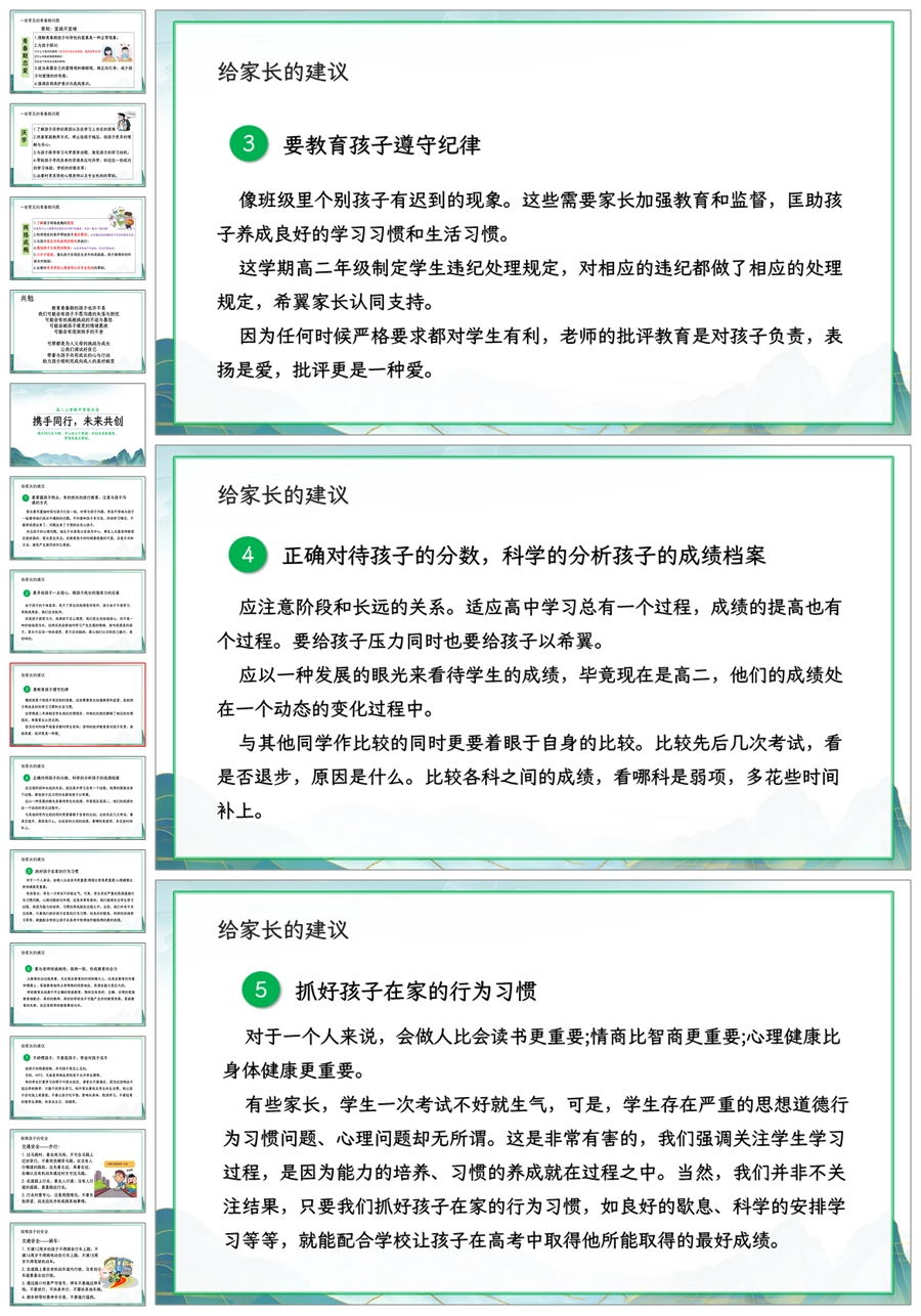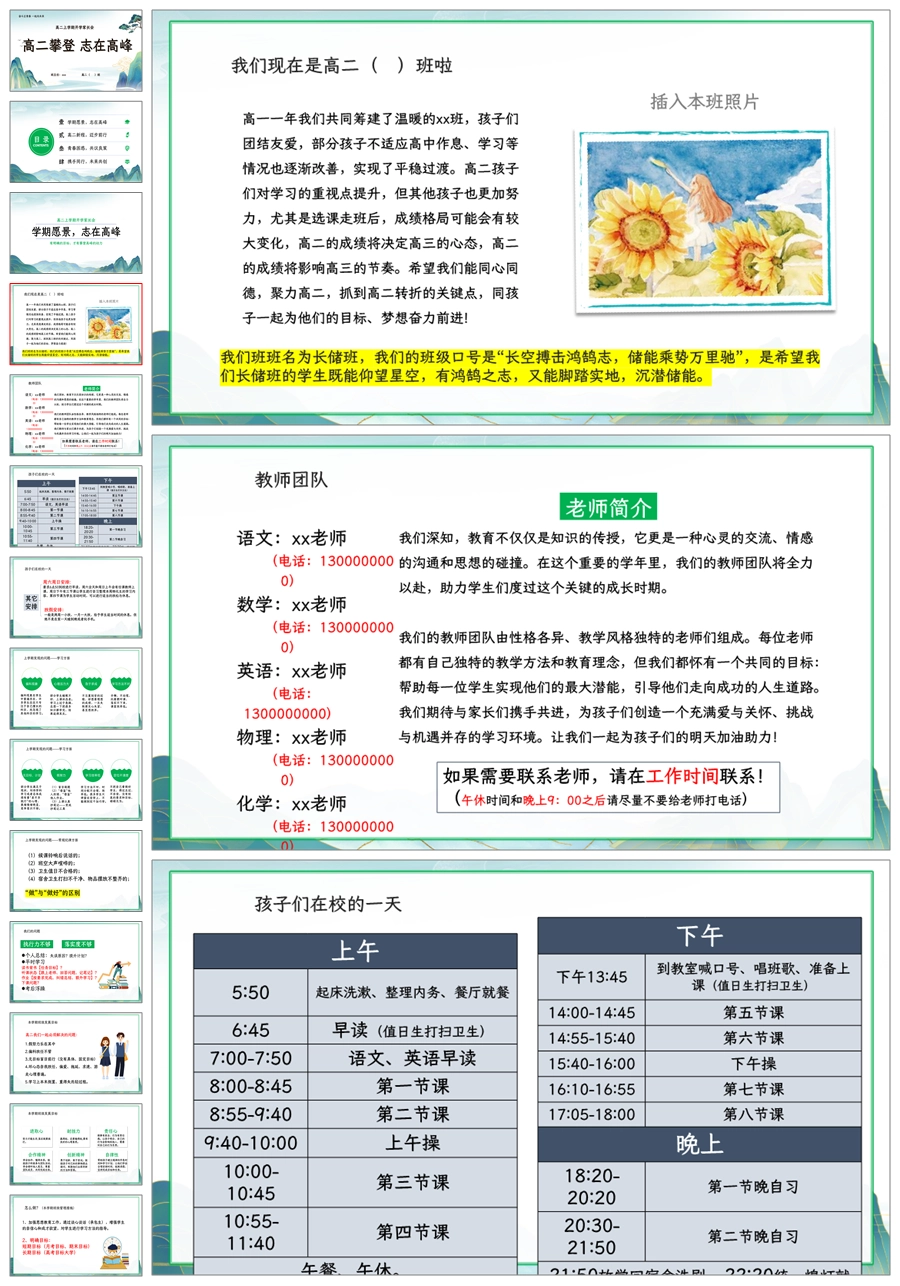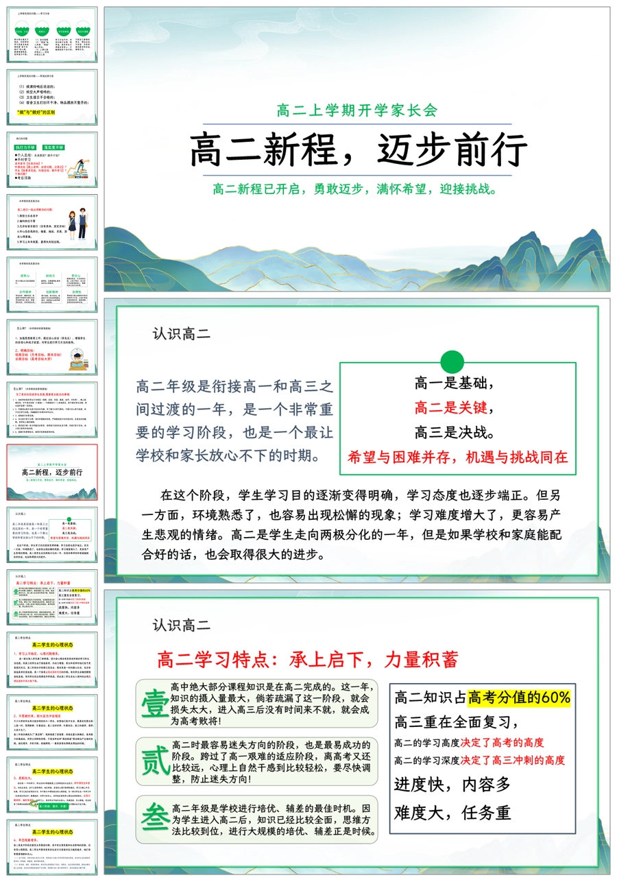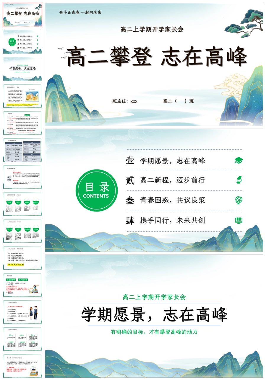 【8549】高二上学期开学家长会《高二攀登志在高峰》高二开学家长会ppt课件+发言稿