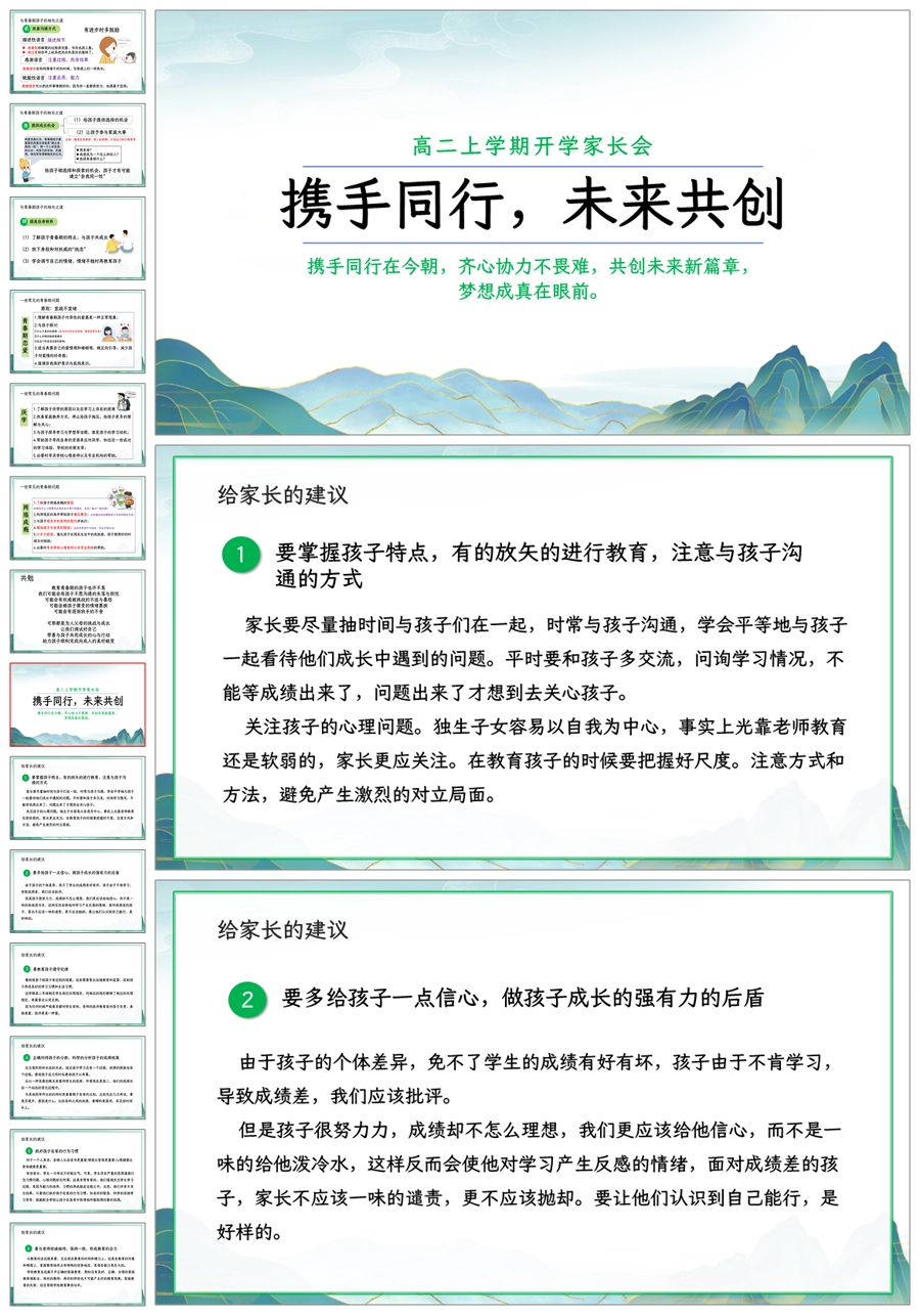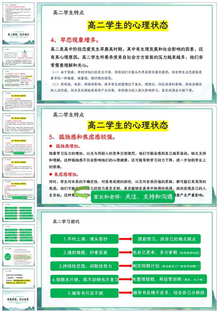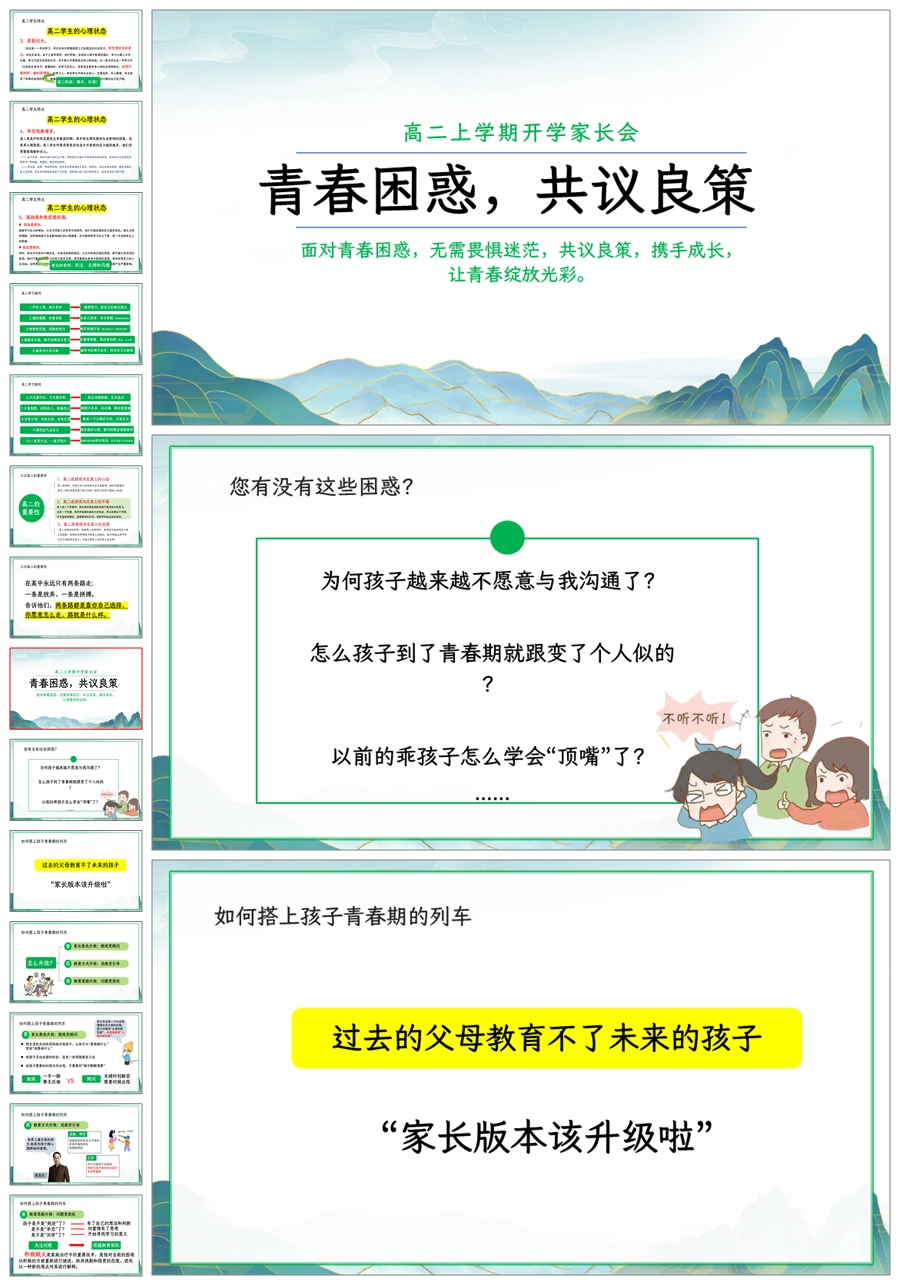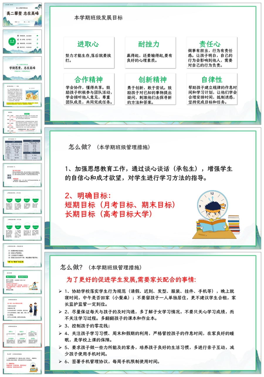 【8549】高二上学期开学家长会《高二攀登志在高峰》高二开学家长会ppt课件+发言稿