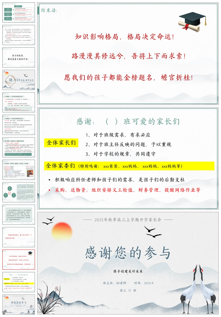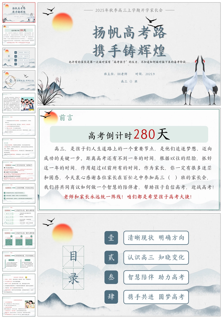 【5072】高三上学期开学家长会《扬帆高考路携手铸辉煌》高三开学家长会PPT课件+发言稿+暖场视频