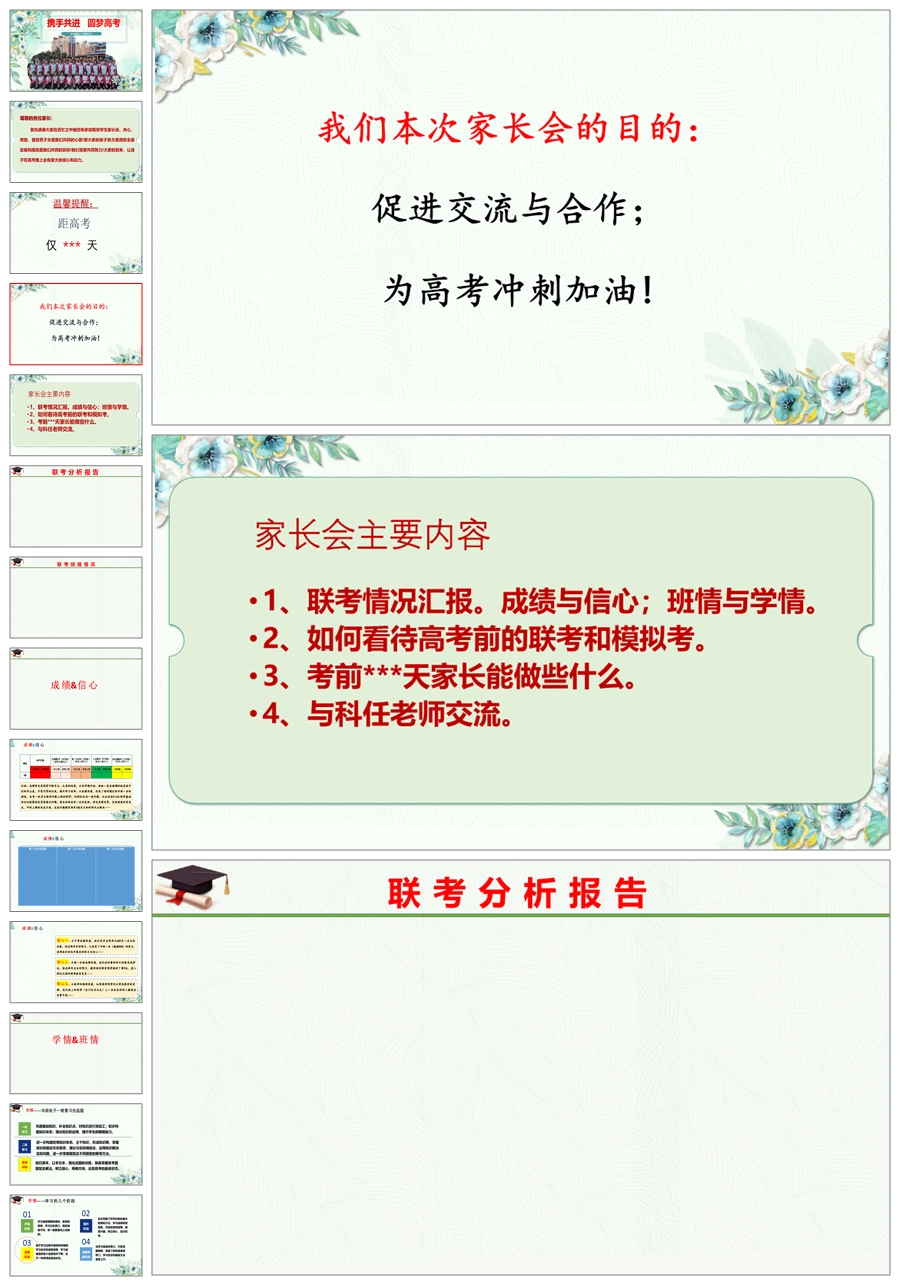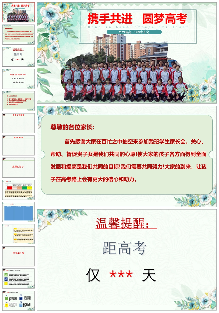 【8116】【高三家长会】《携手共进圆梦高考》高三下学期家长会高考前100天家长会PPT