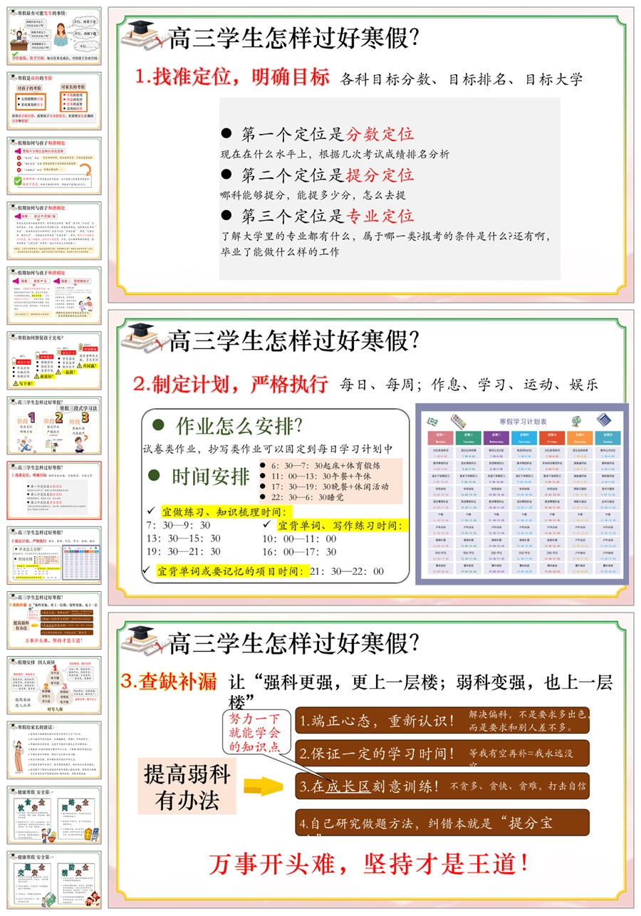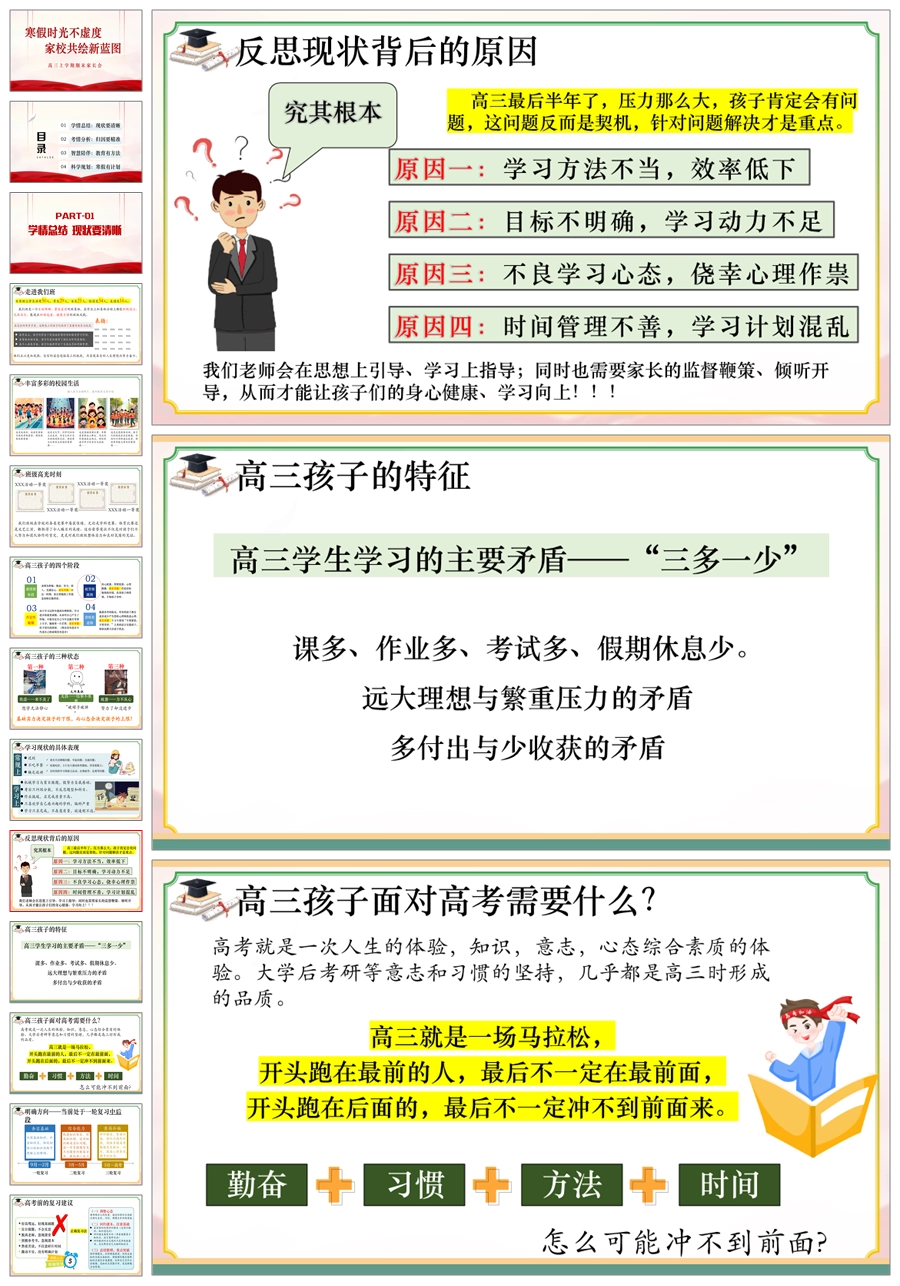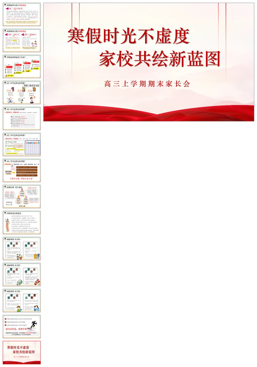 【8242】【高三家长会】《寒假时光不虚度家校共绘新蓝图》高三第一学期寒假期末家长会PPT(课件+教案)