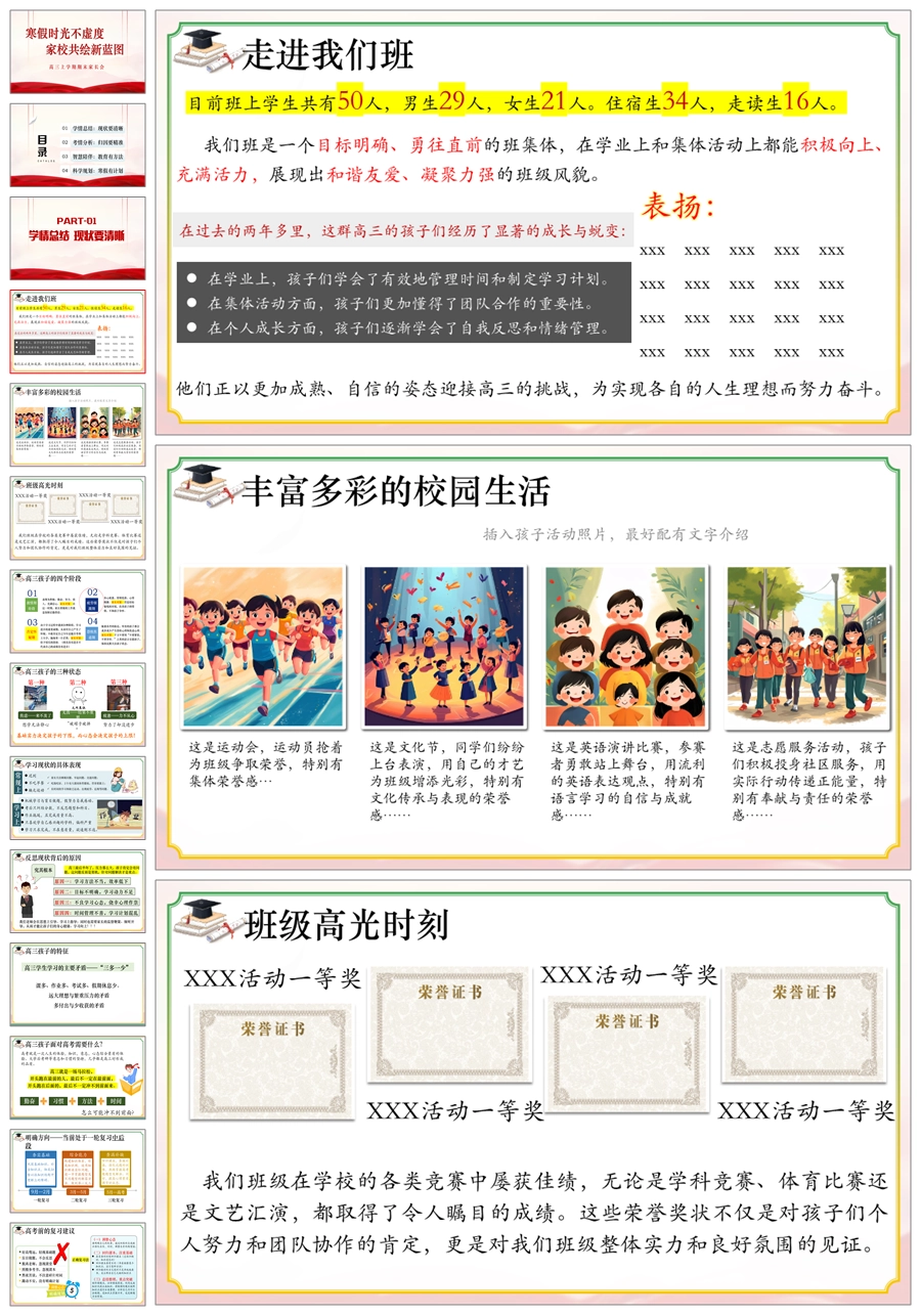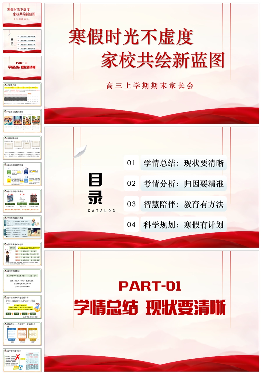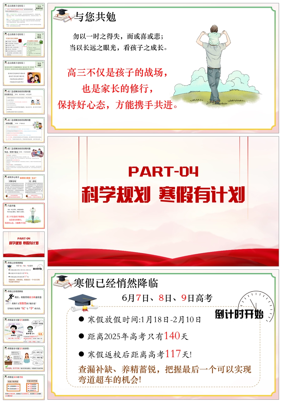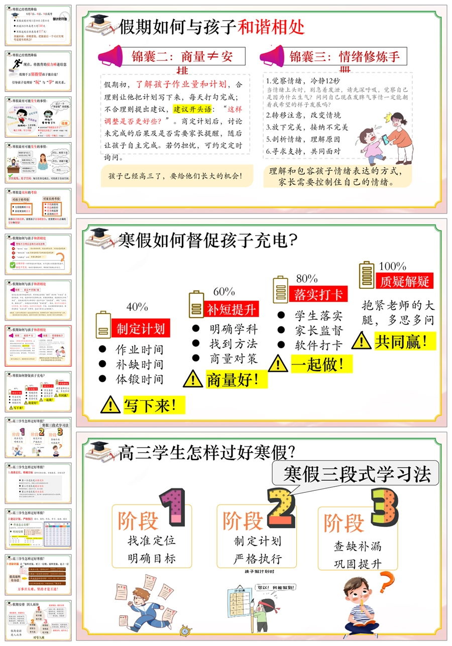 【8242】【高三家长会】《寒假时光不虚度家校共绘新蓝图》高三第一学期寒假期末家长会PPT(课件+教案)