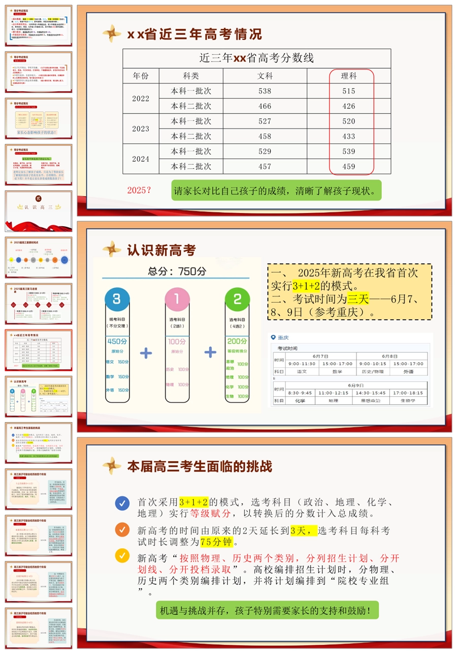 【8285】【高三家长会】《扬帆高考路,携手铸辉煌》新高三开学家长会PPT(课件+讲稿)