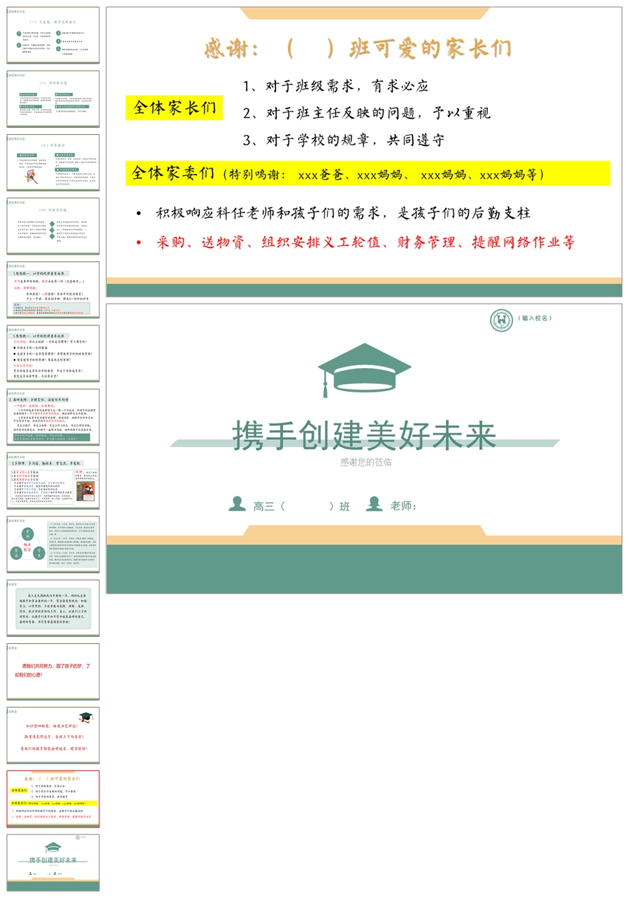 【8371】【高三家长会】《携手共进圆梦高考》高三上学期开学家长会PPT(课件+发言稿)
