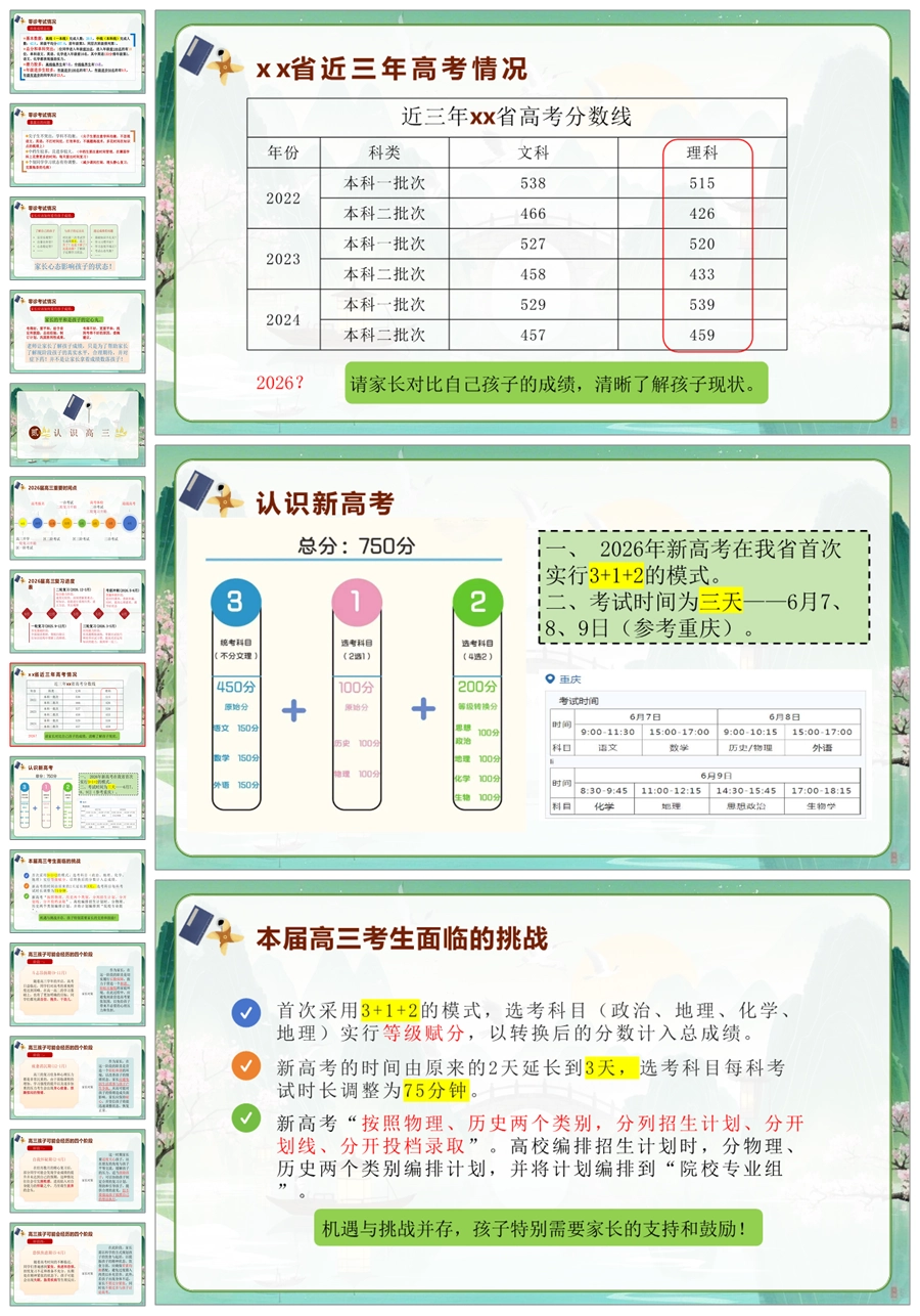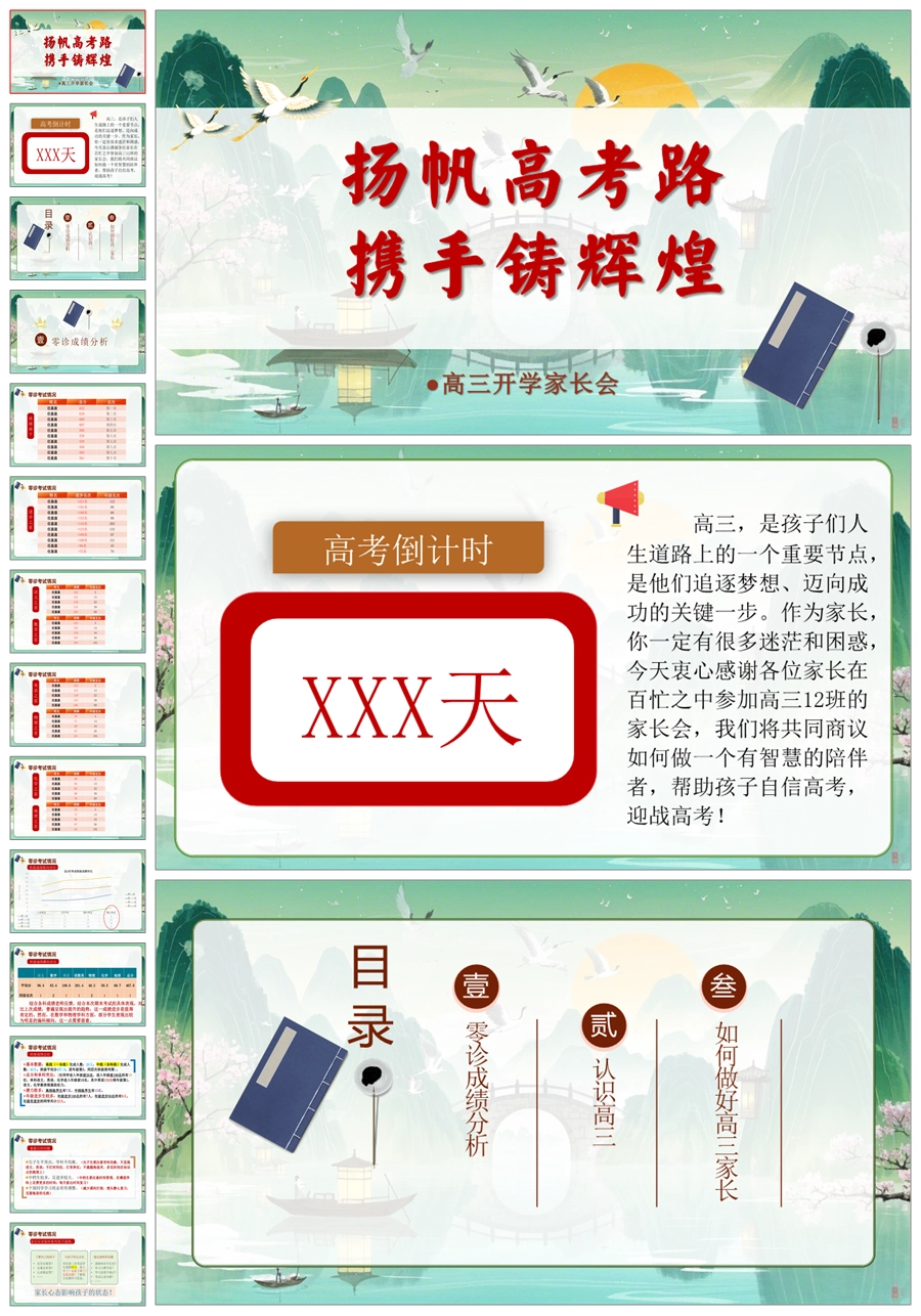 【8372】【高三家长会】《扬帆高考路携手铸辉煌》新高三开学家长会PPT(课件+发言稿)