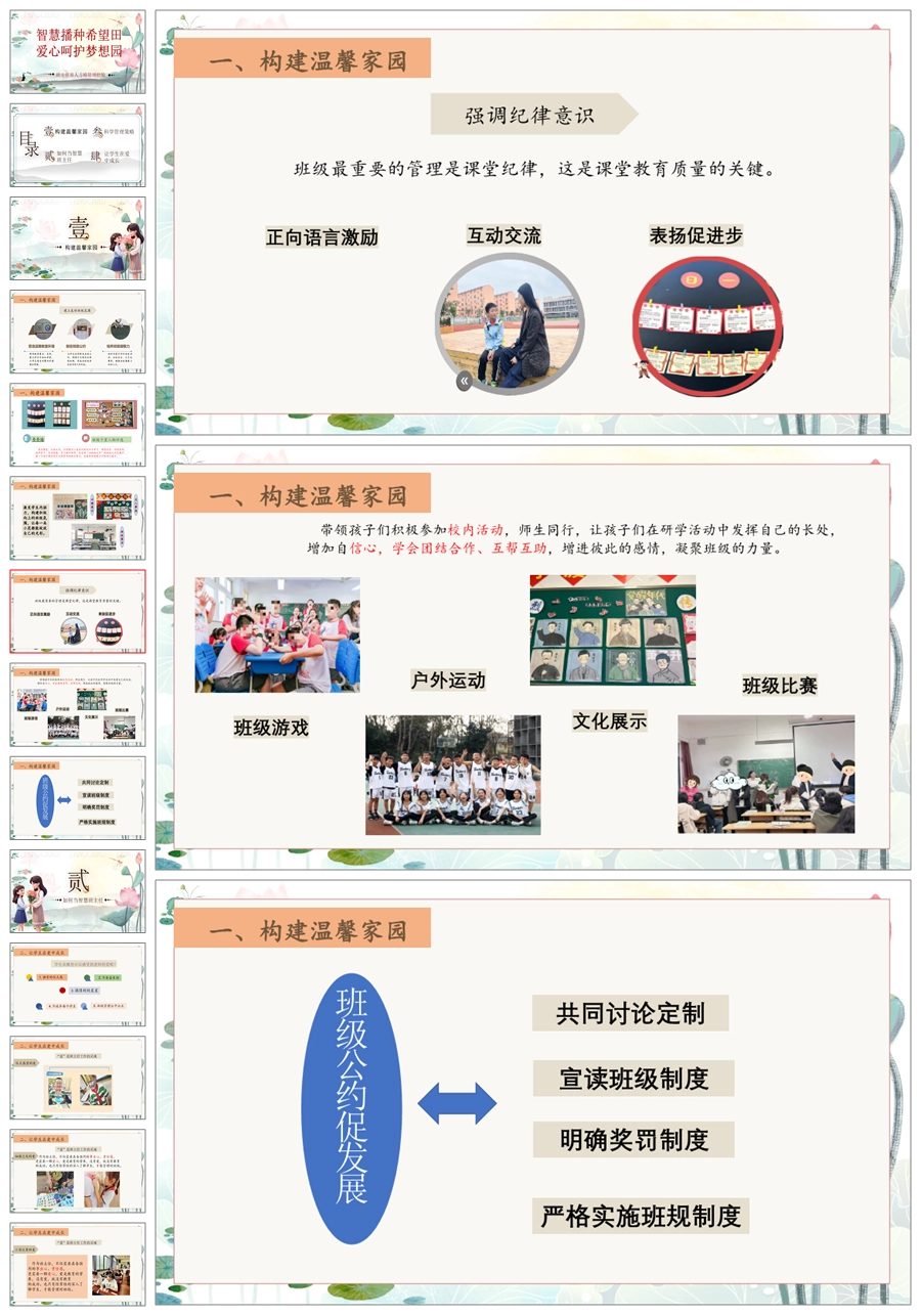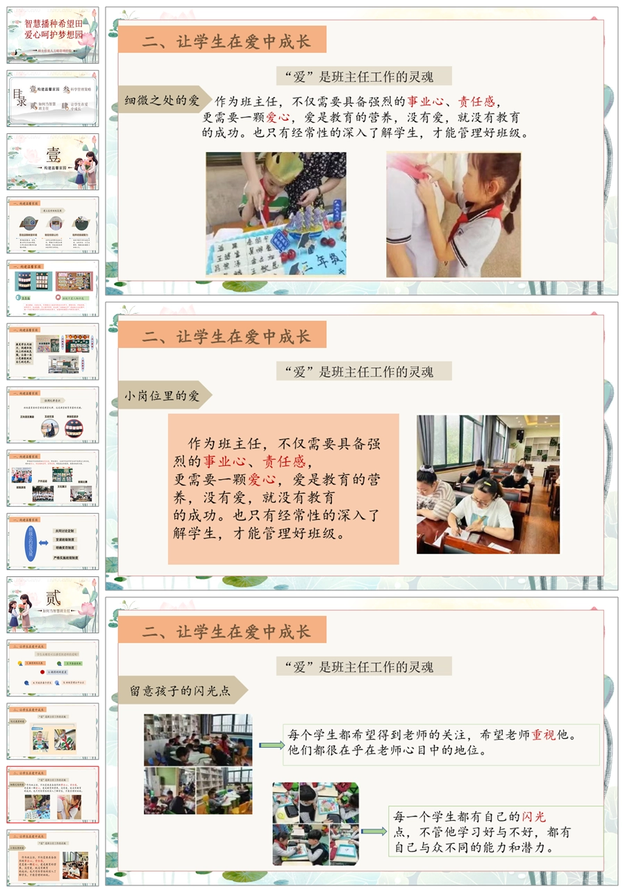【8223】【经验交流】《智慧播种希望田,爱心呵护梦想园》班主任育人方略PPT(课件+发言稿)