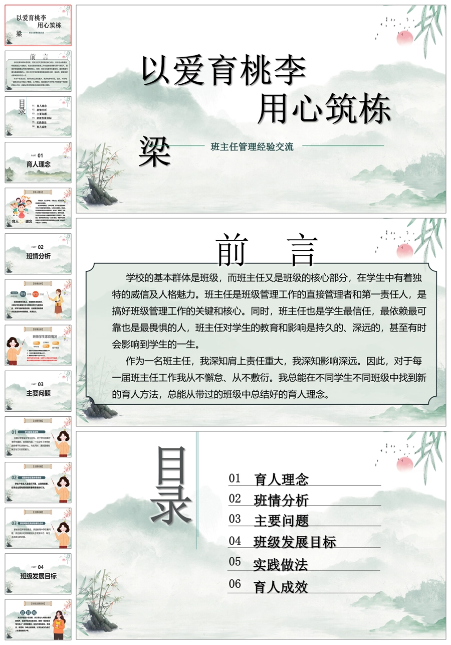 【8228】【育人方略】《以爱育桃李,用心筑栋梁》班主任育人方略PPT(课件+发言稿)