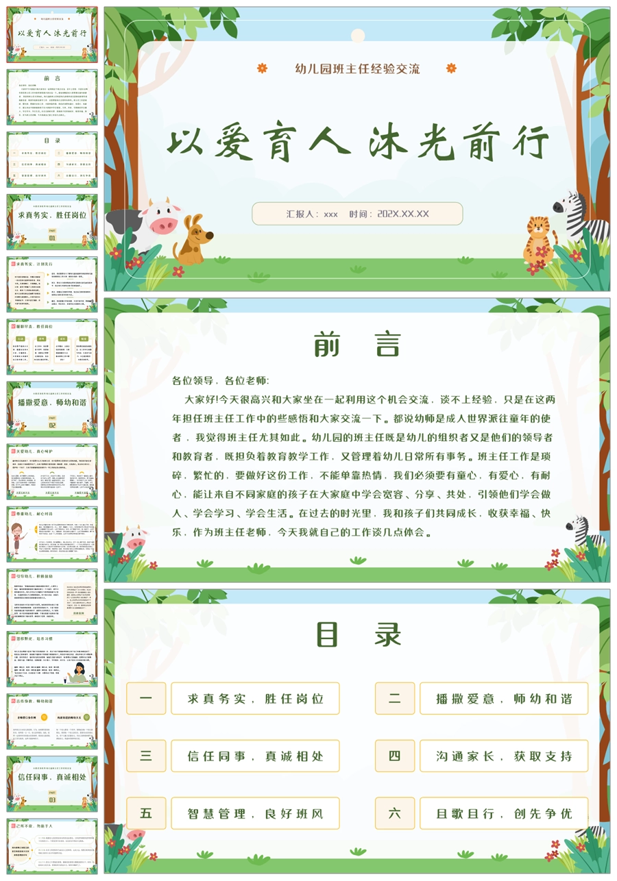 【8254】【经验交流】《以爱育人沐光前行》幼儿园班主任经验交流配套PPT发言稿