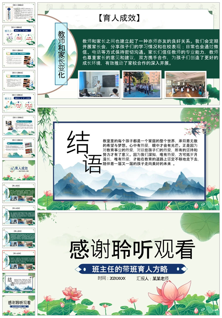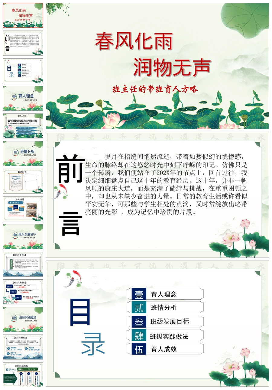 【8411】【育人方略】《春风化雨润物无声》班主任技能大赛班主任带班育人方略PPT(课件+发言稿)