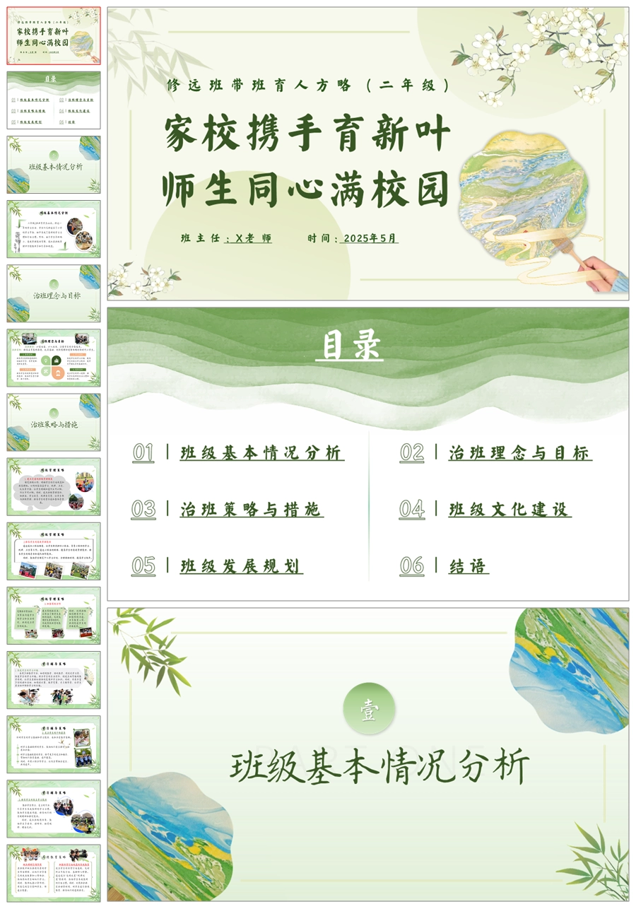 【8424】班主任带班育人方略《家校携手育新叶,师生同心满校园》PPT课件+发言稿
