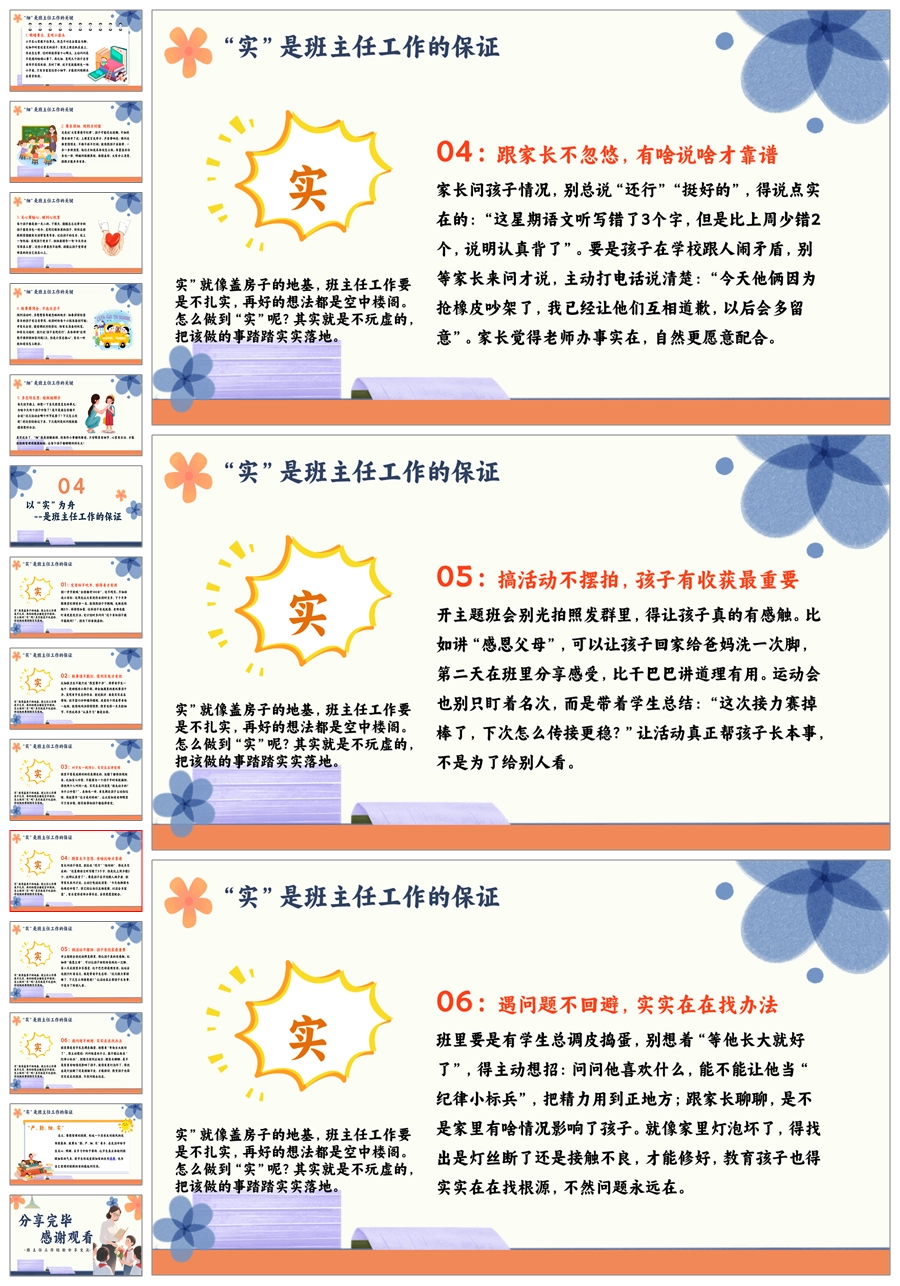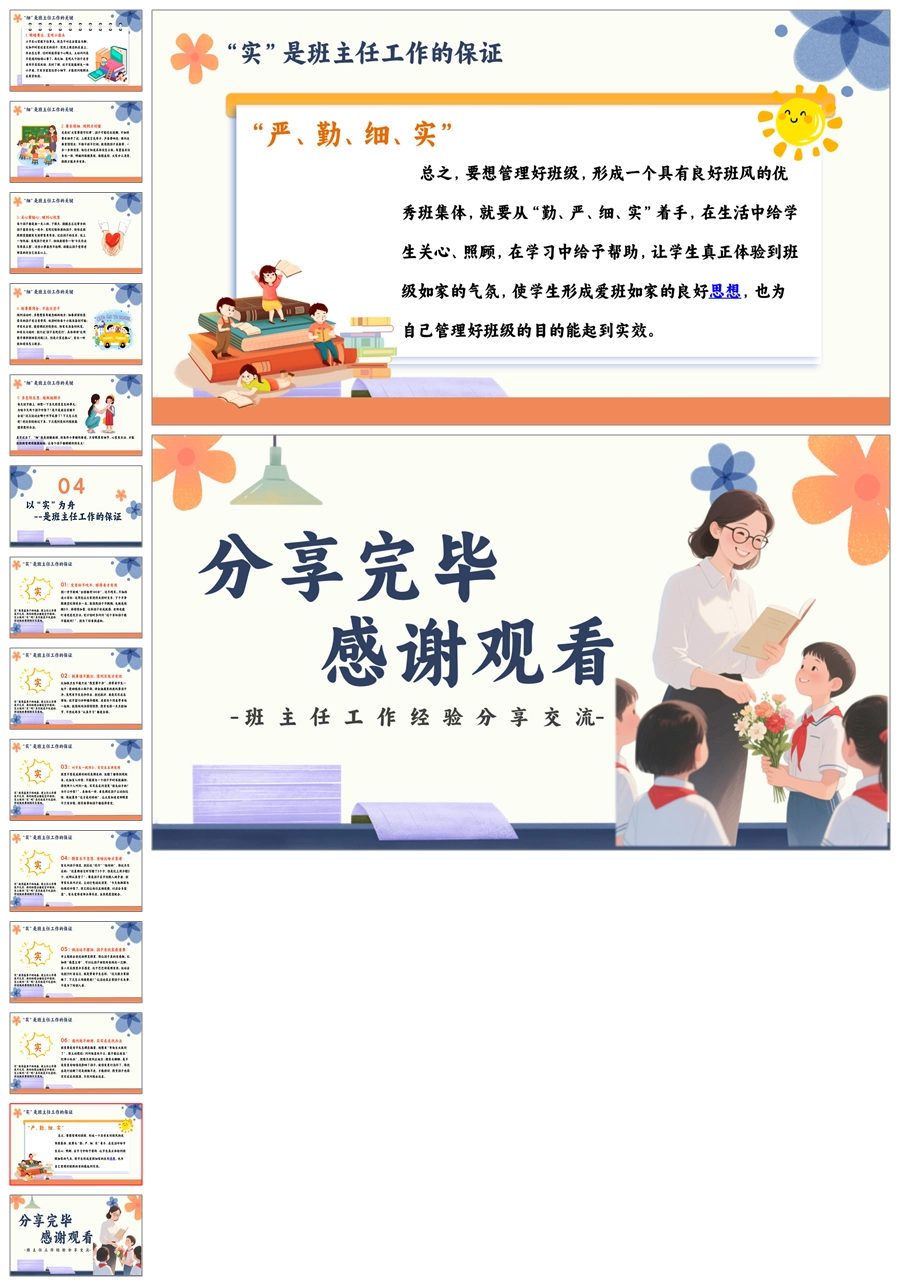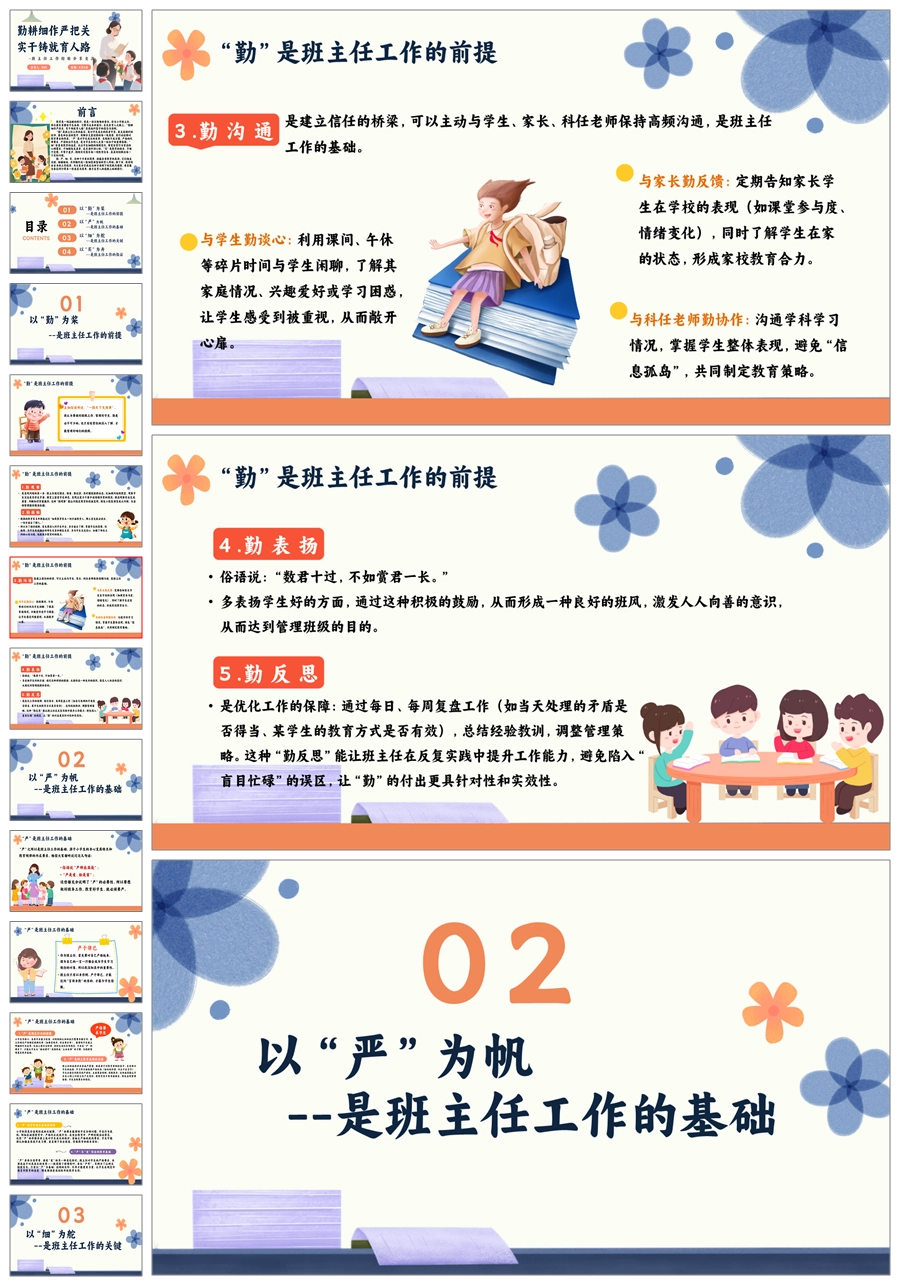 【8601】《勤耕细作严把关,实干铸就育人路》小学班主任工作经验分享ppt课件+发言稿