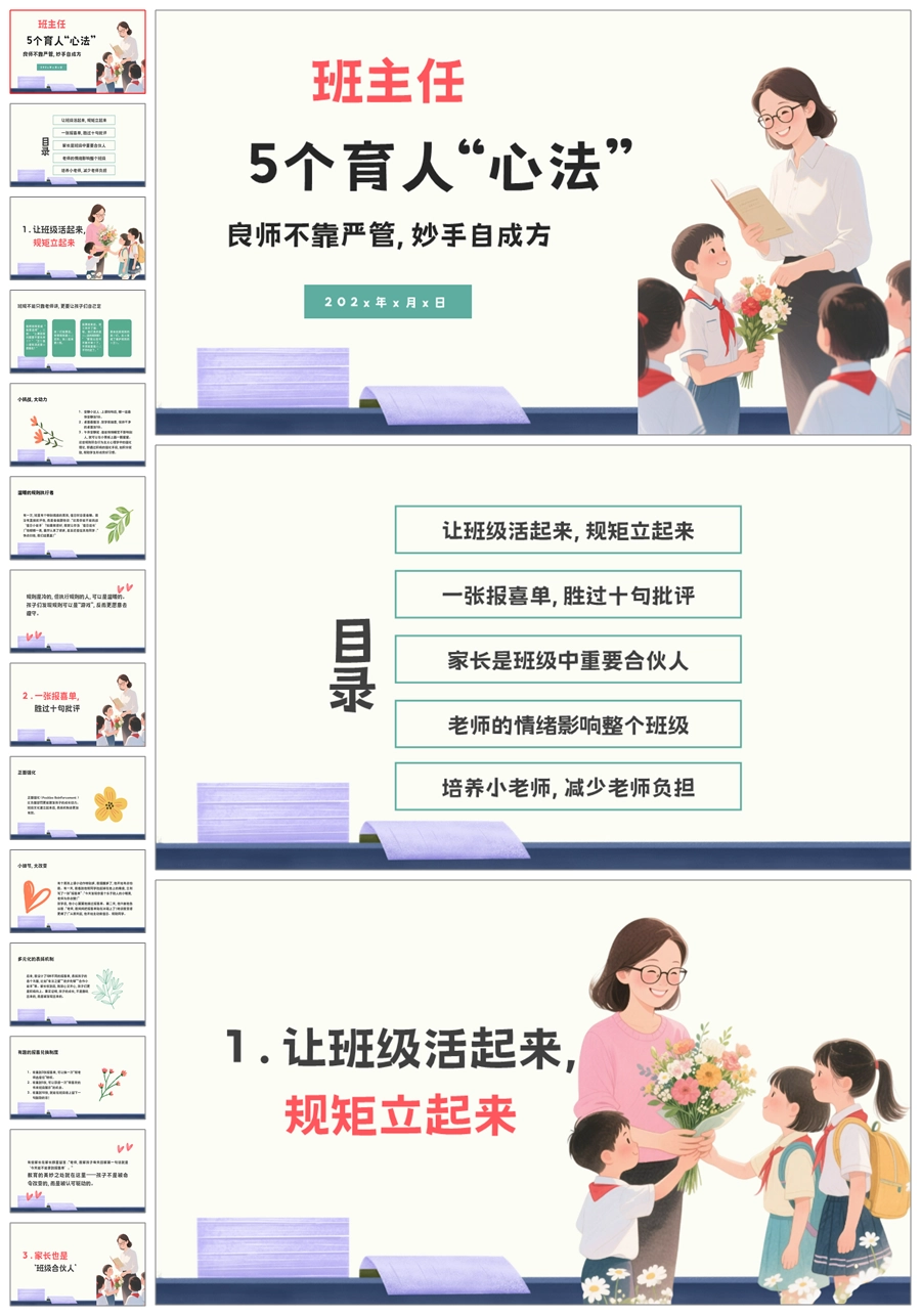 【8604】《五个育人心法》优秀班主任经验分享发言稿+ppt课件