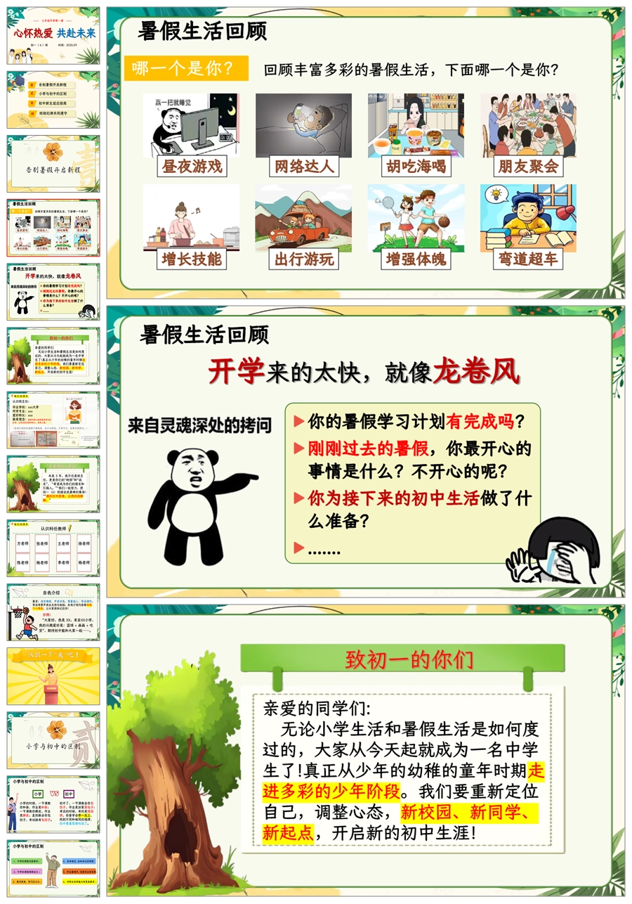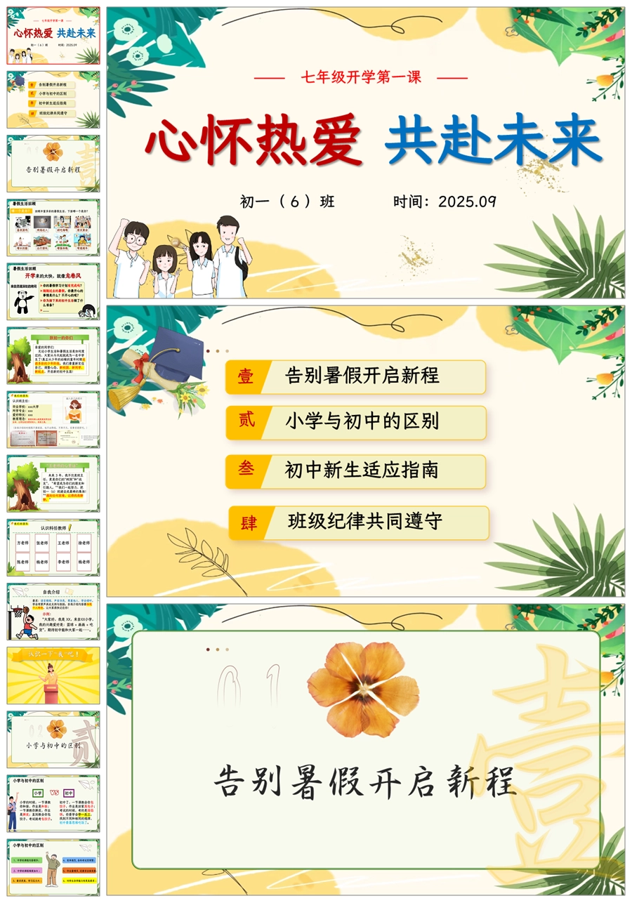 【5055】初一开学第一课《心怀热爱共赴未来》初一上学期开学第一课PPT课件+逐字稿