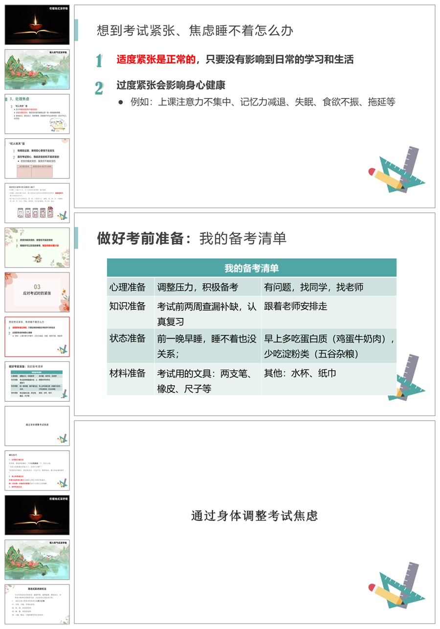 【8029】【考试减压】《减轻压力用心助考》初三减压心理健康讲座PPT(讲义+课件)