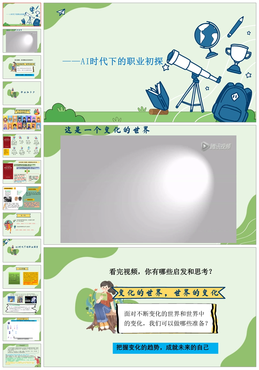 【8116】【生涯教育】《把握趋势-AI时代下的职业初探》生涯规划教育主题班会课件PPT(教案+课件+视频)
