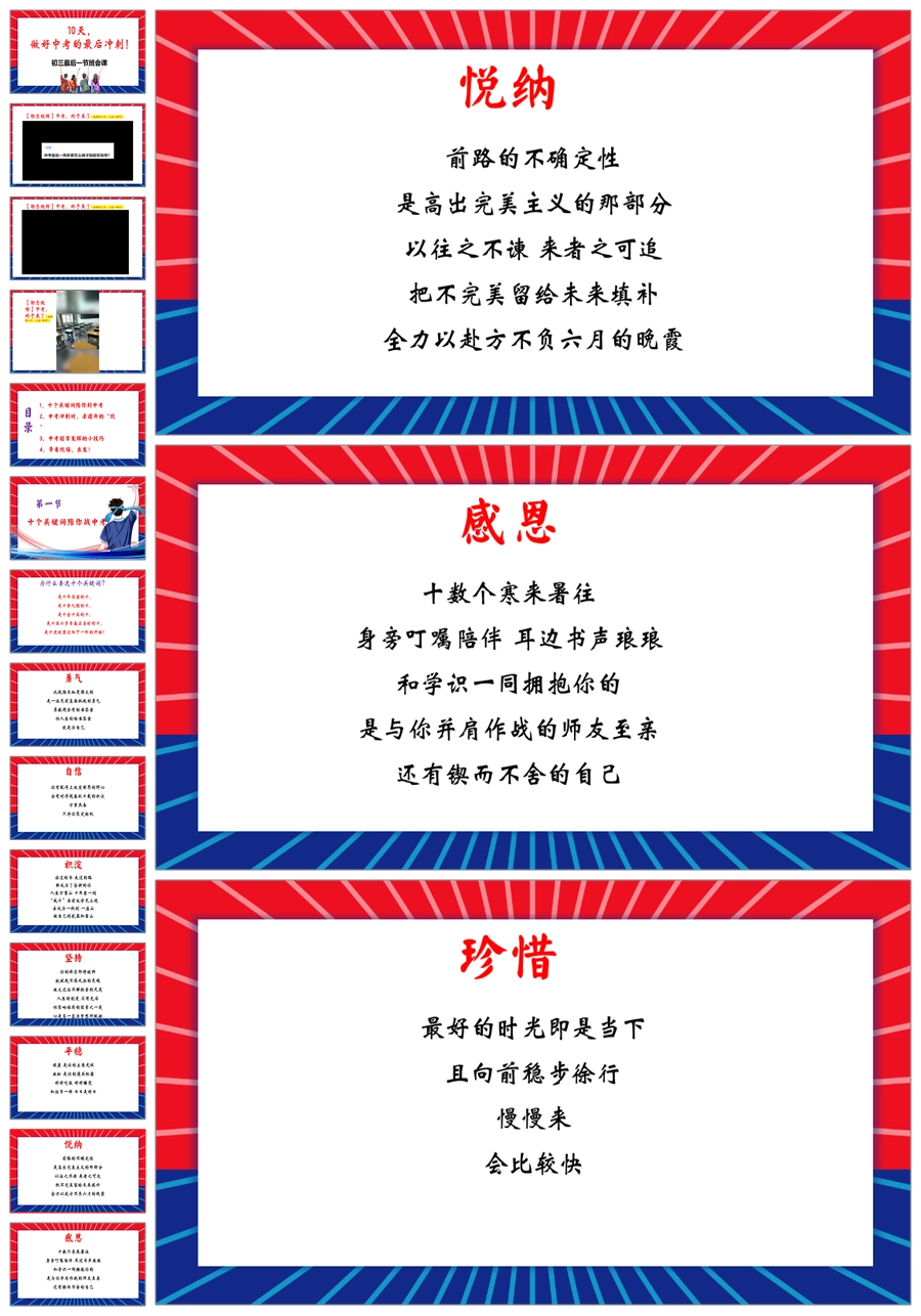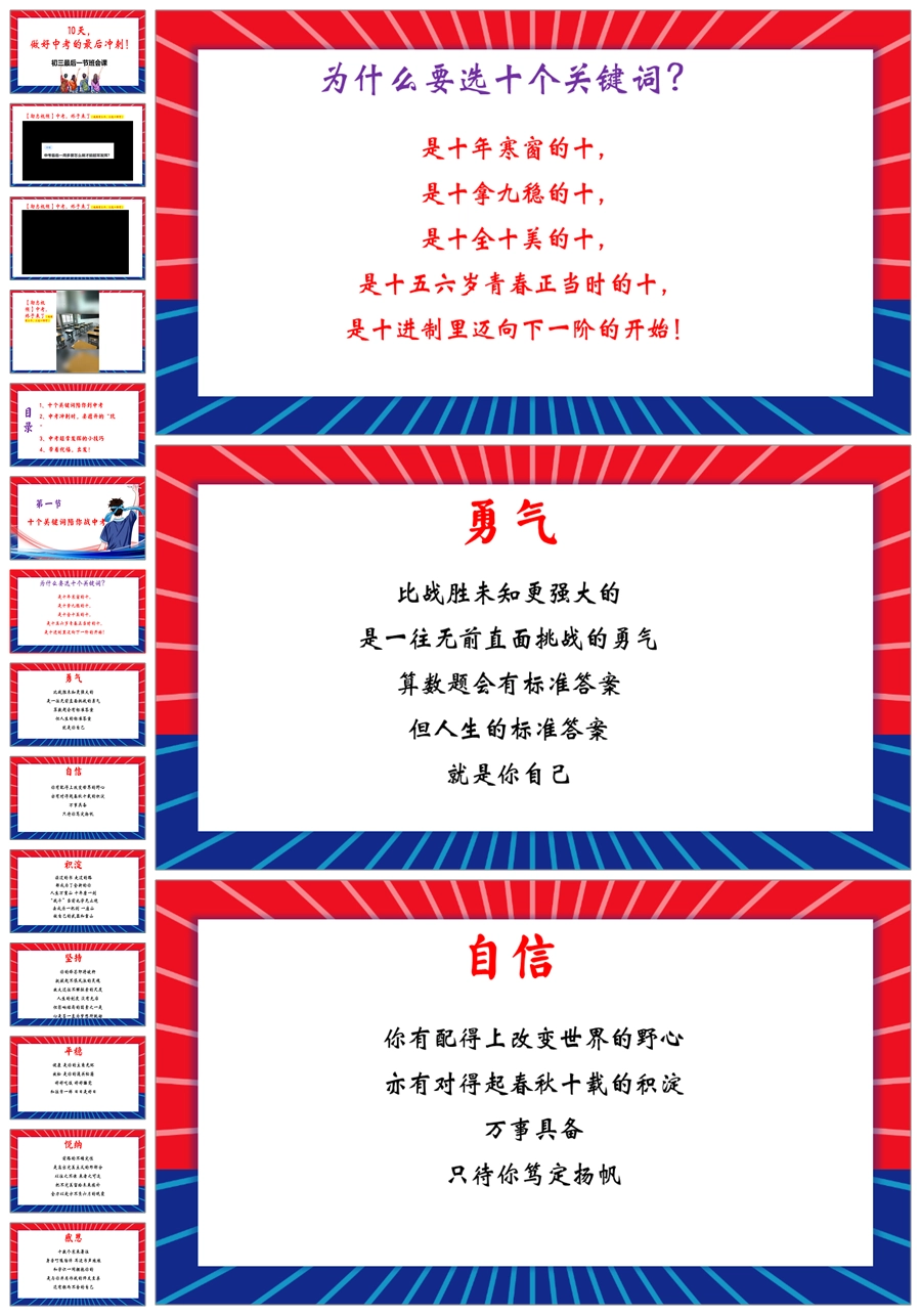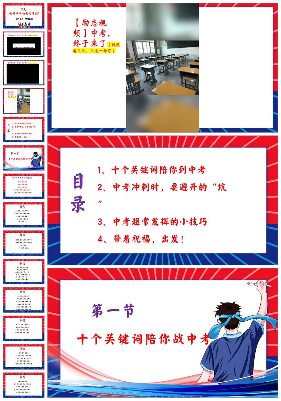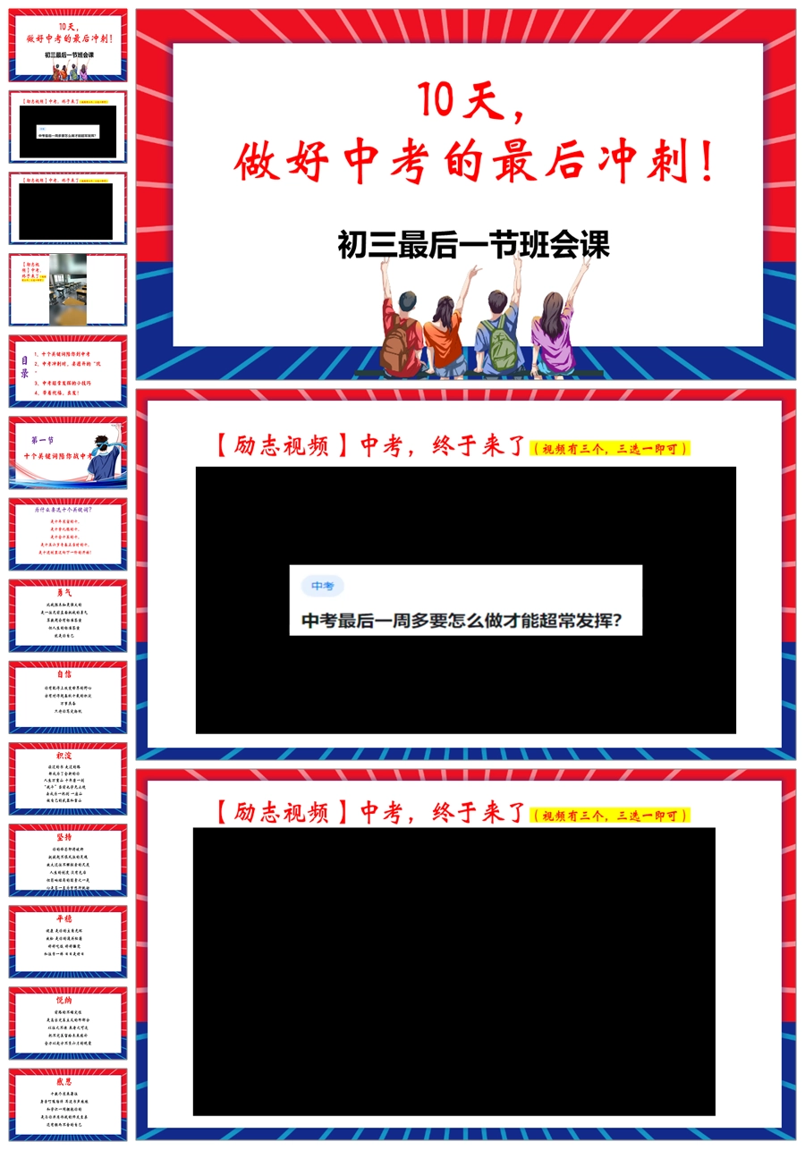 【8365】【中考冲刺】《做好中考的最后冲刺》初三最后一节班会PPT(课件+教案+视频)