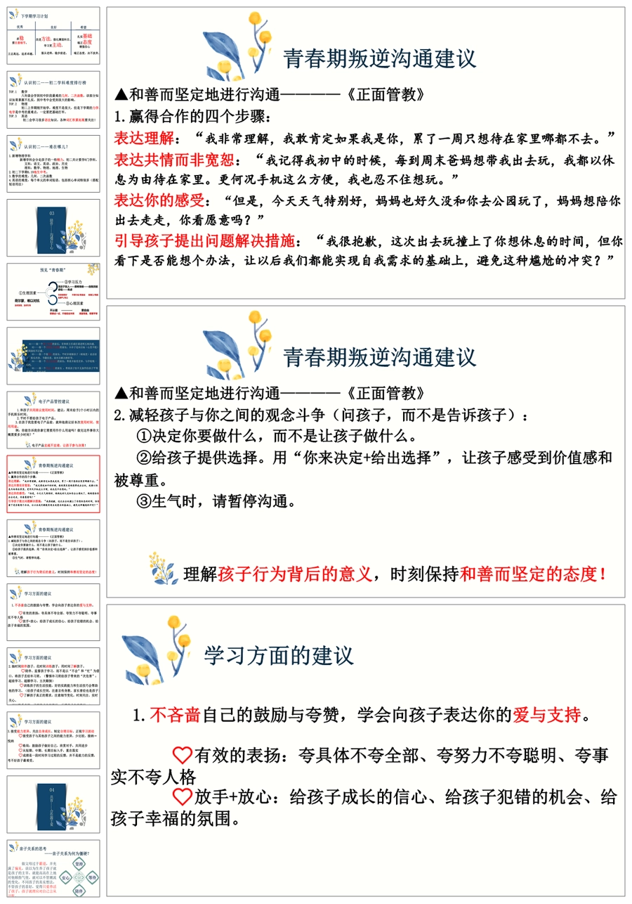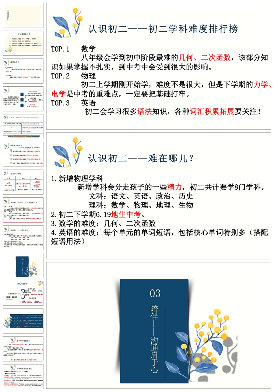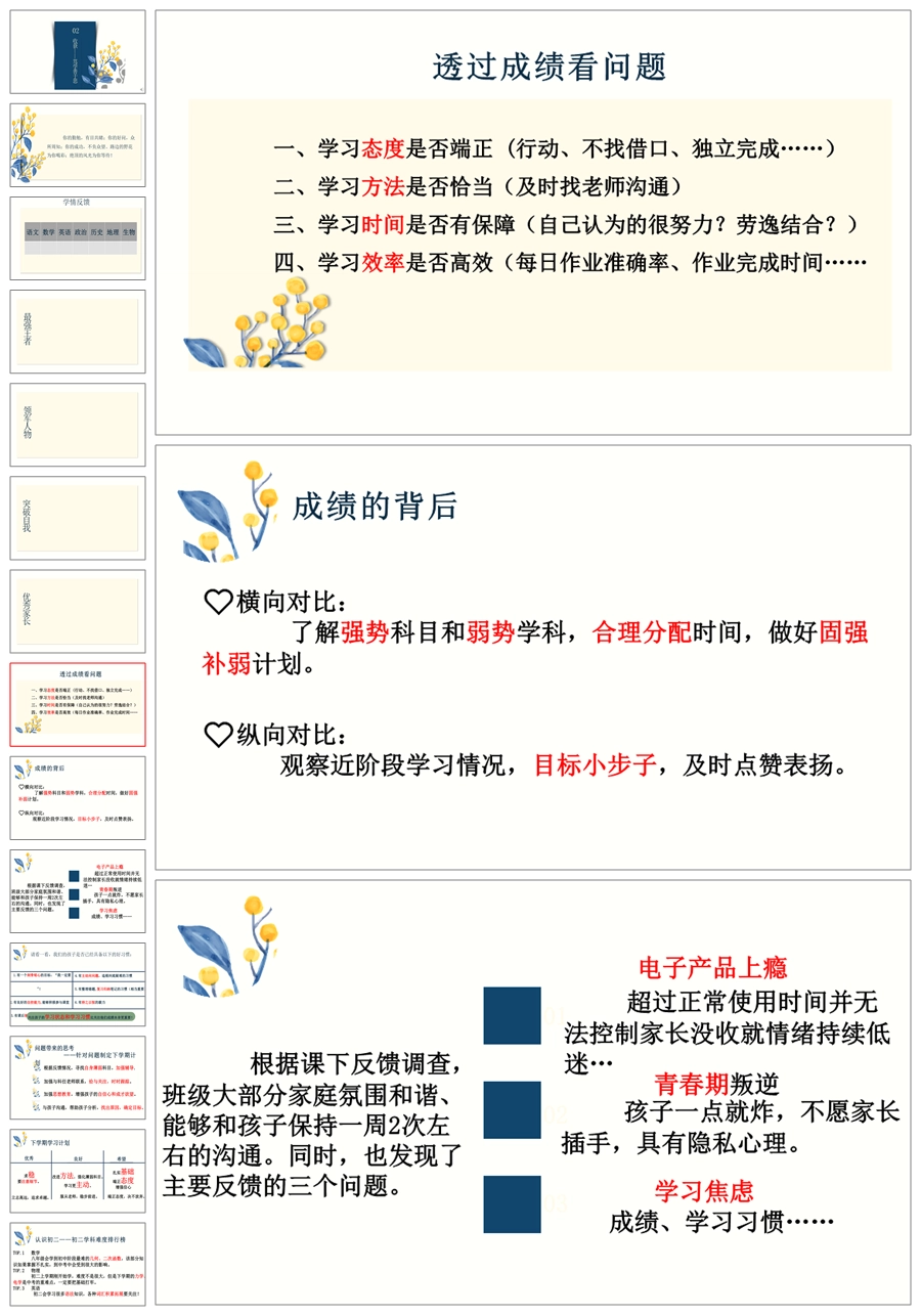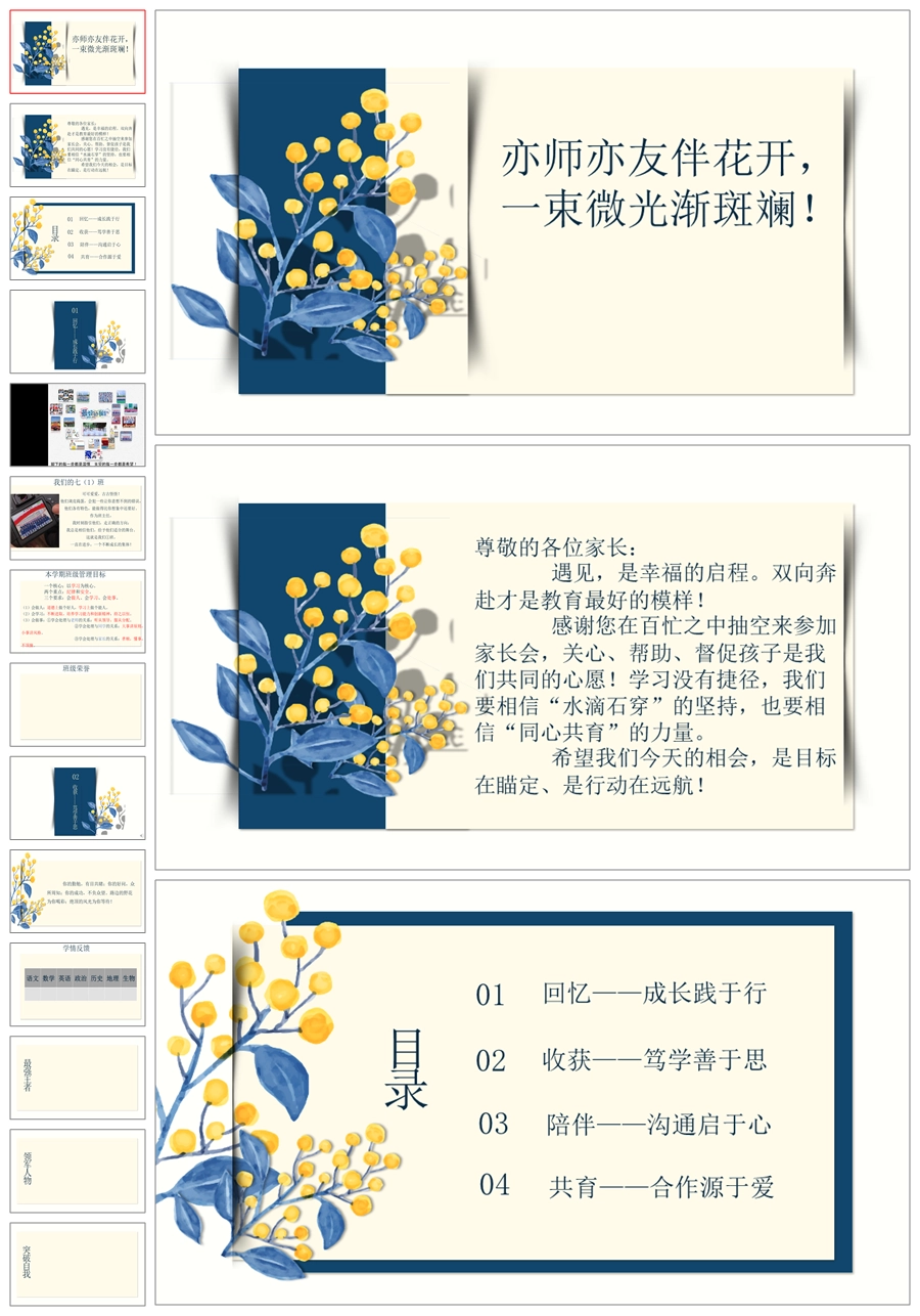 【8426】初一七年级下期末家长会《亦师亦友伴花开》ppt课件+配套发言稿