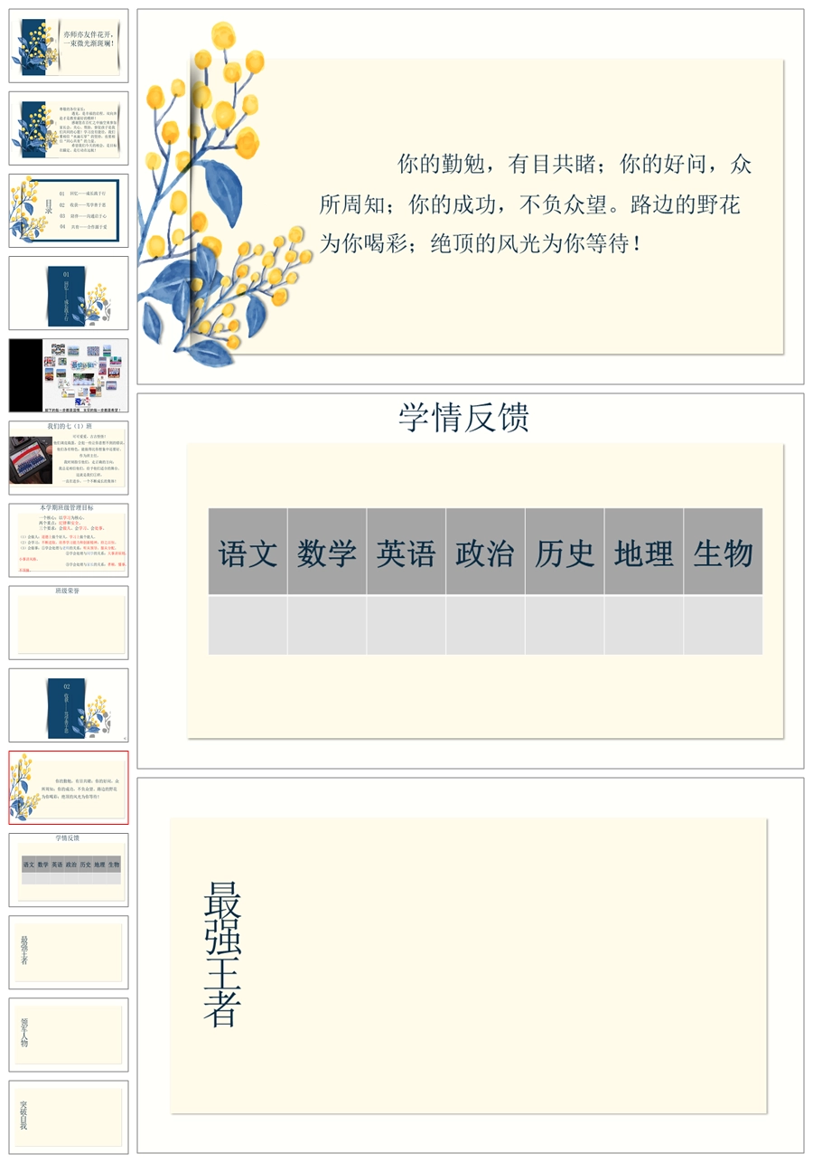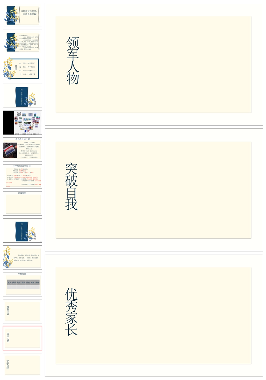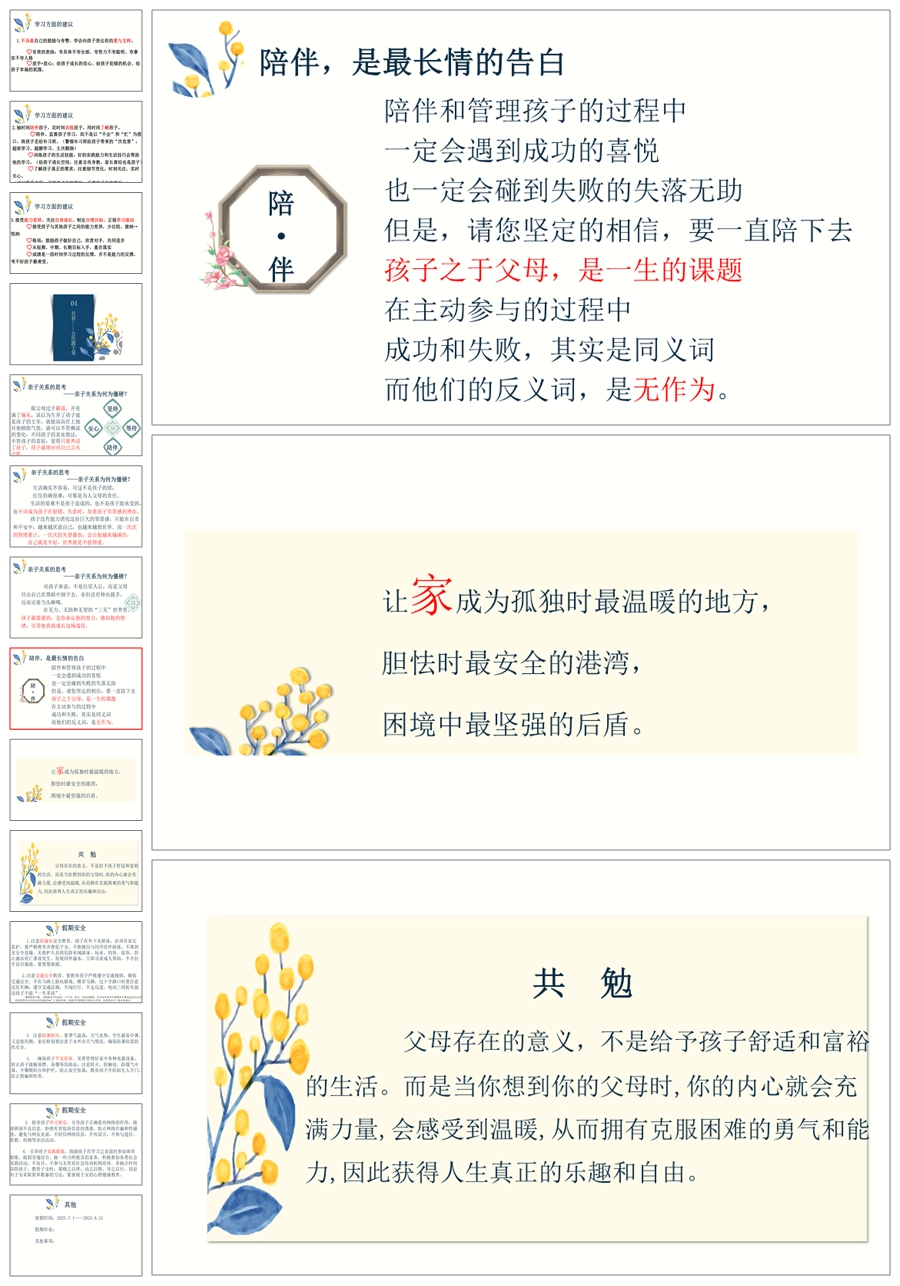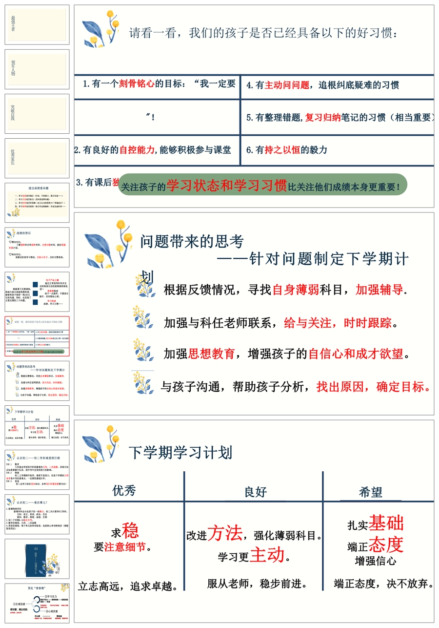 【8426】初一七年级下期末家长会《亦师亦友伴花开》ppt课件+配套发言稿