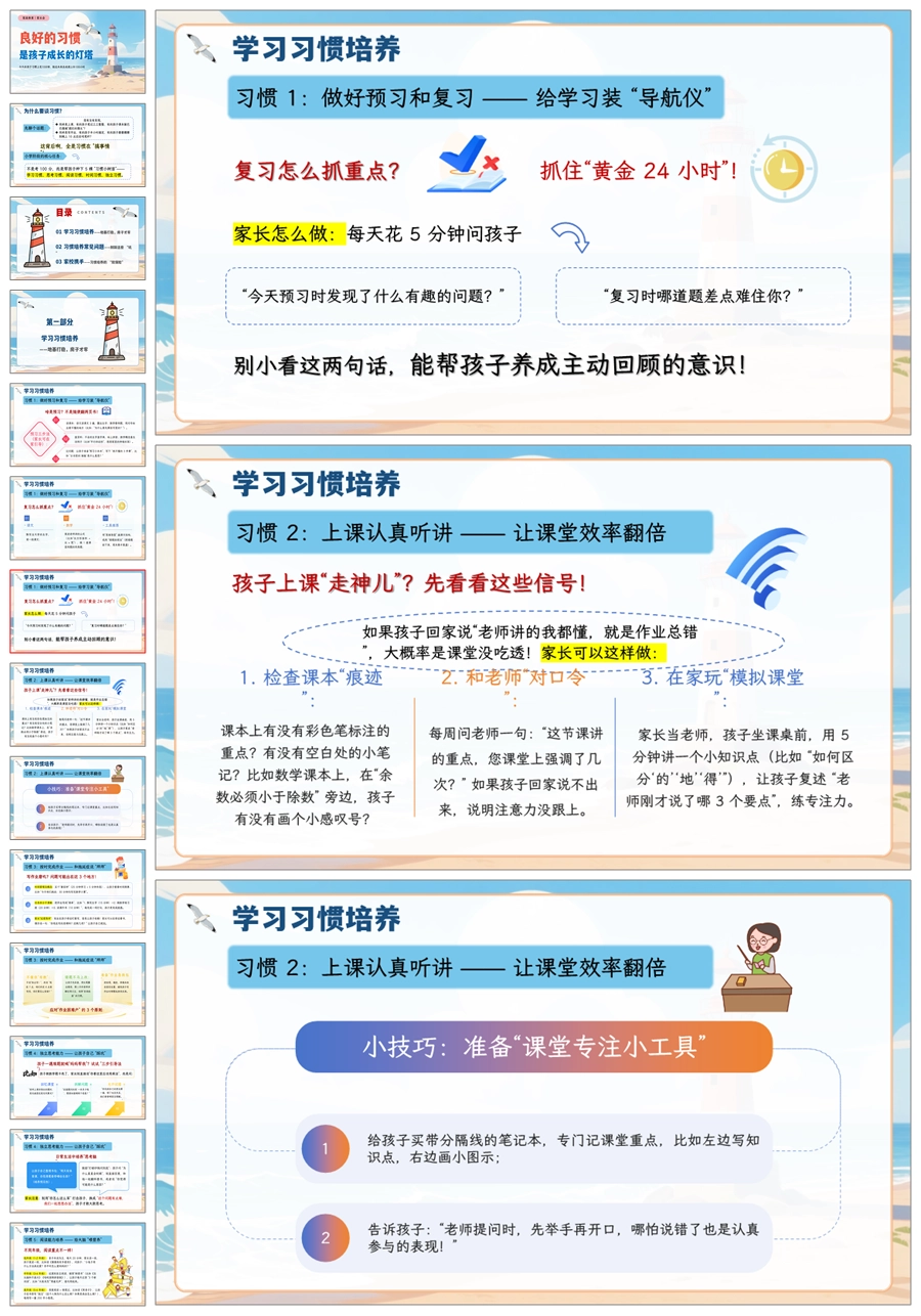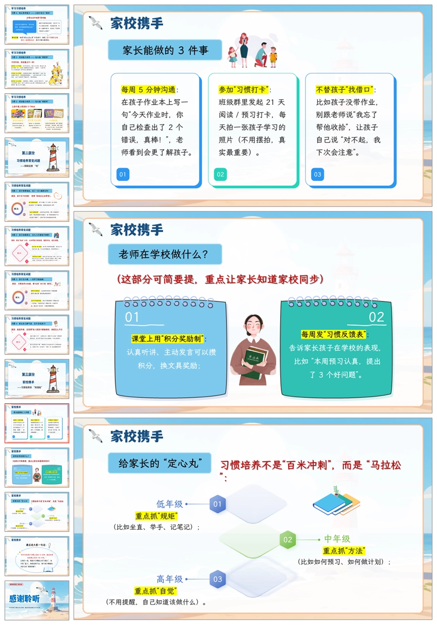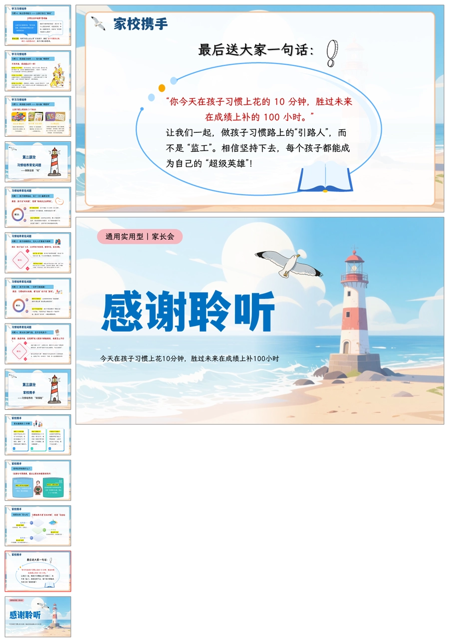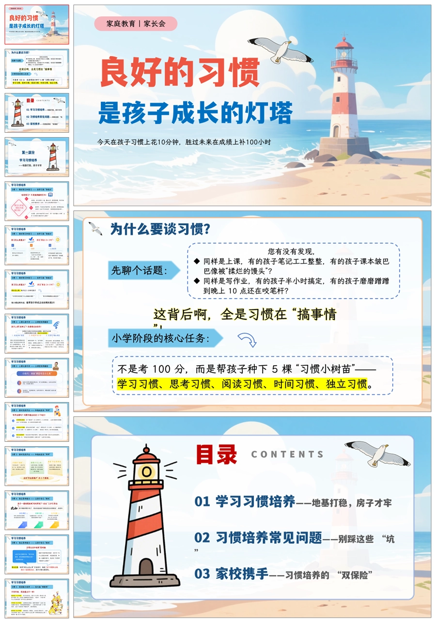 【5066】家庭教育家长会《良好的习惯是孩子成长的灯塔》家长会ppt课件+发言稿