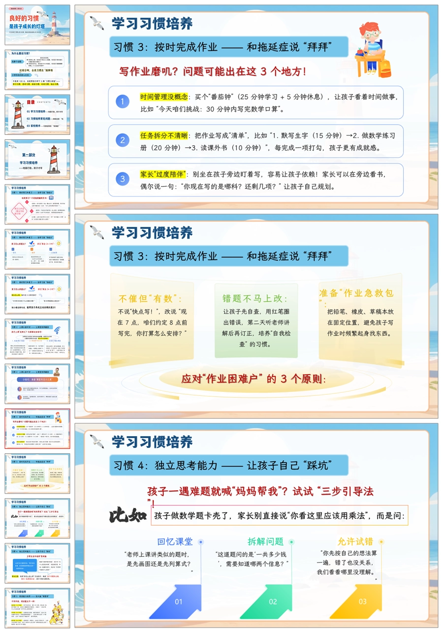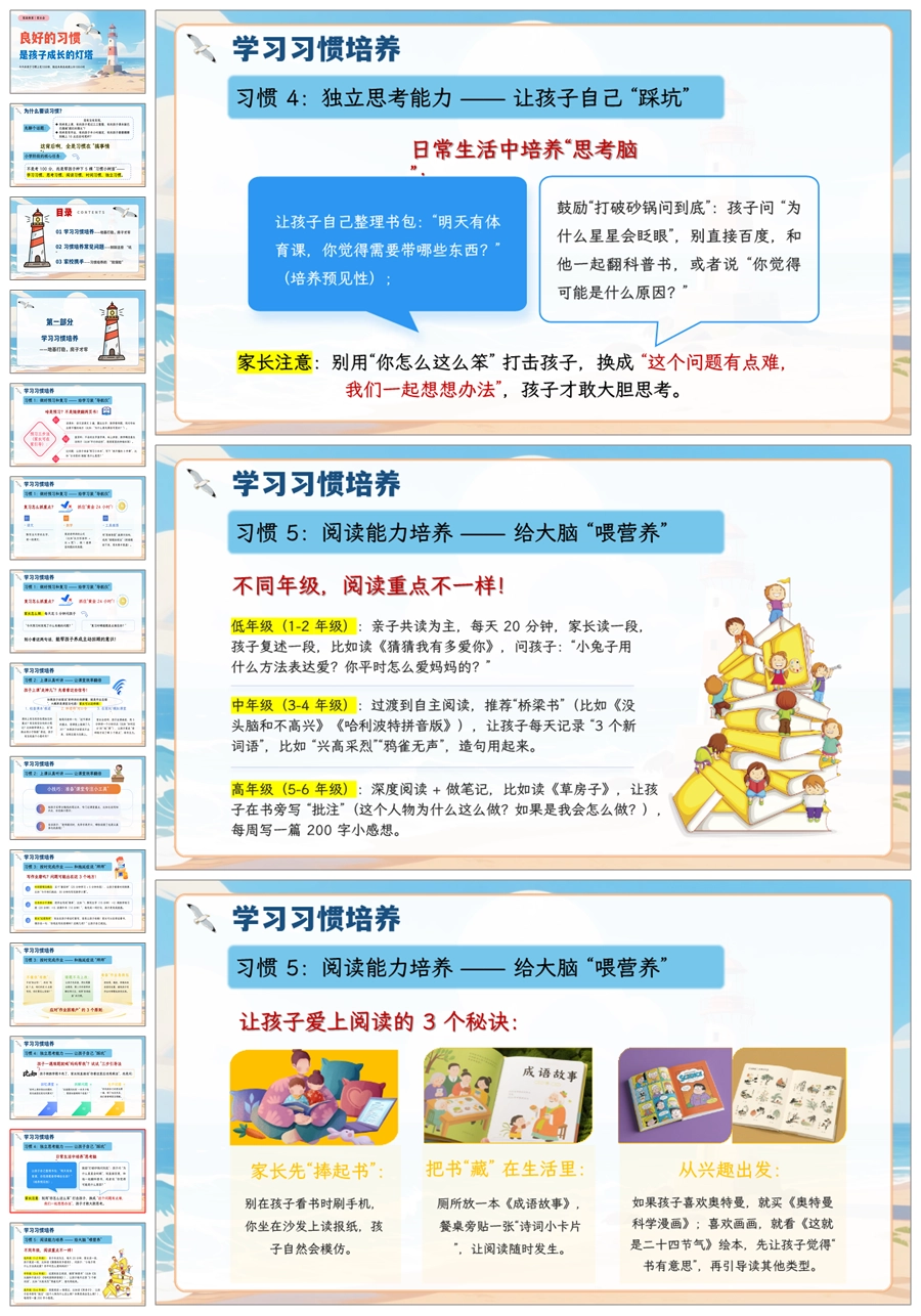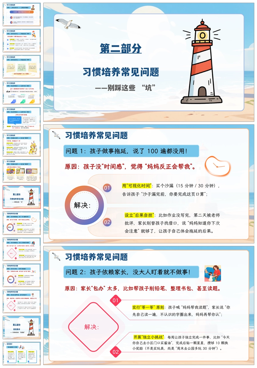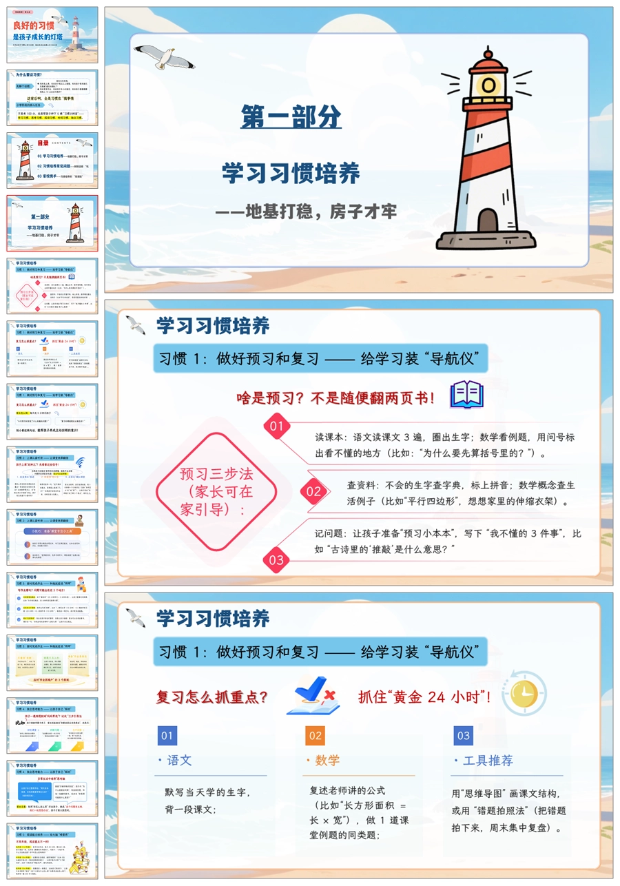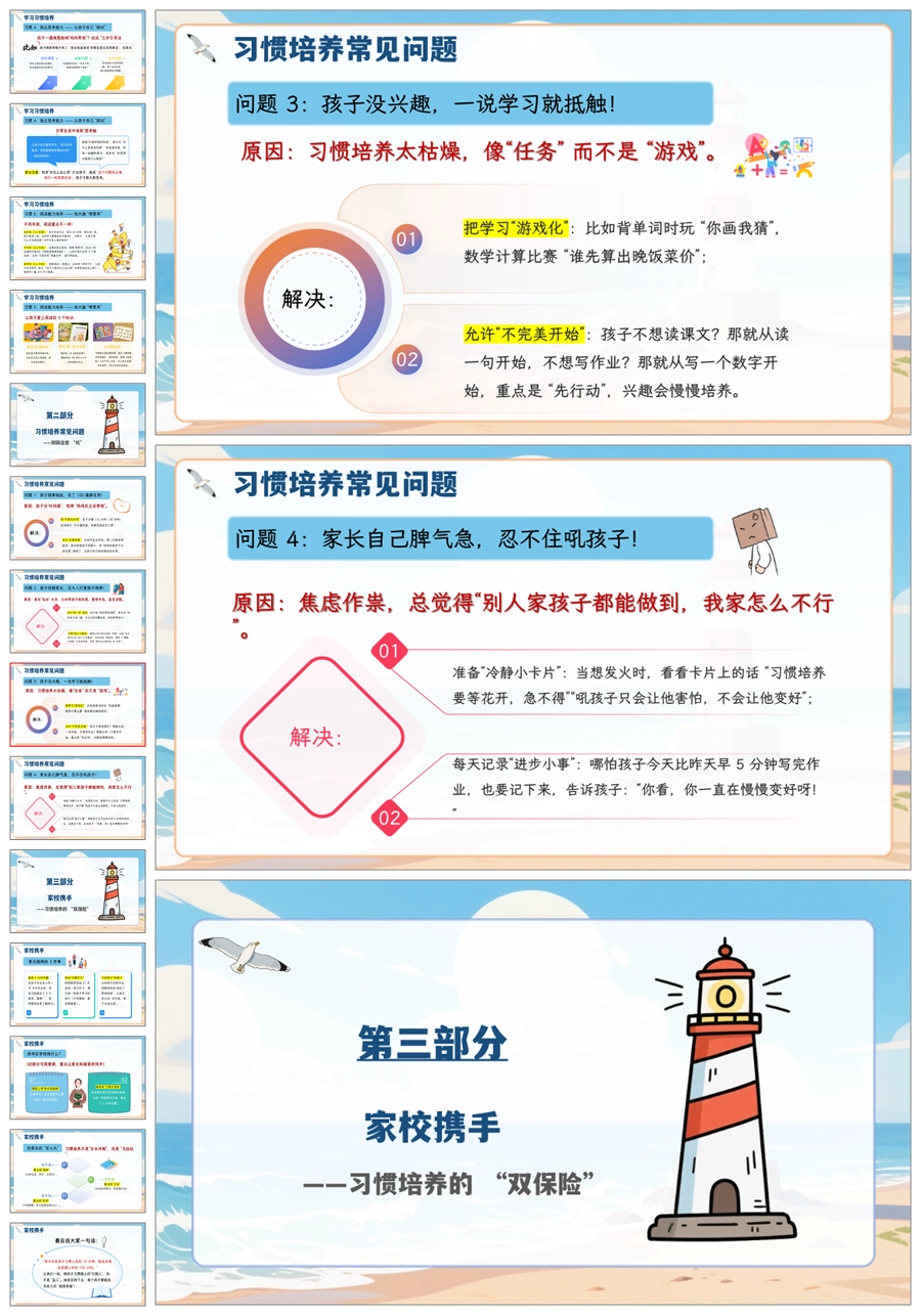 【5066】家庭教育家长会《良好的习惯是孩子成长的灯塔》家长会ppt课件+发言稿