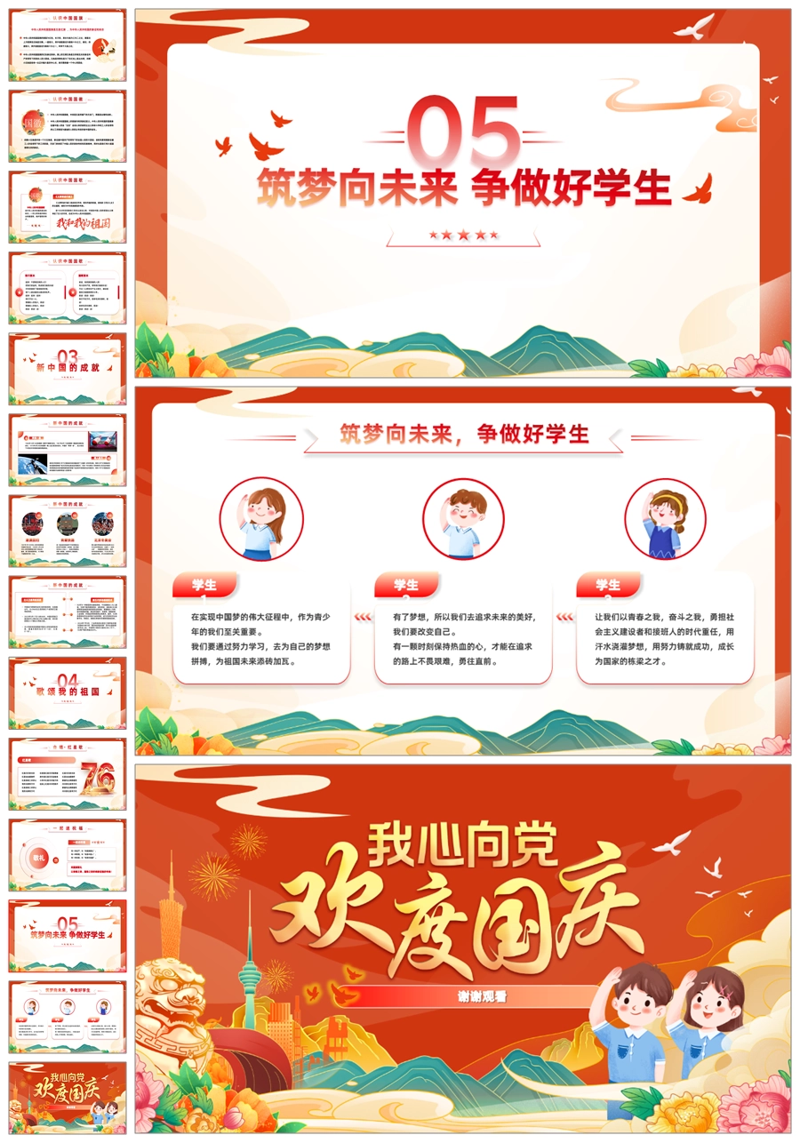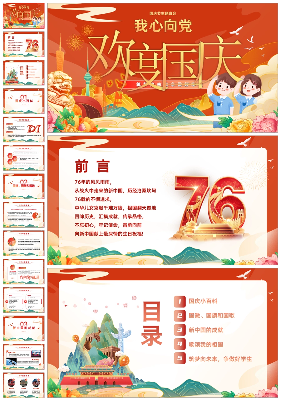 【5090】爱国主义教育《筑梦未来欢度国庆》国庆节班会PPT课件+教案