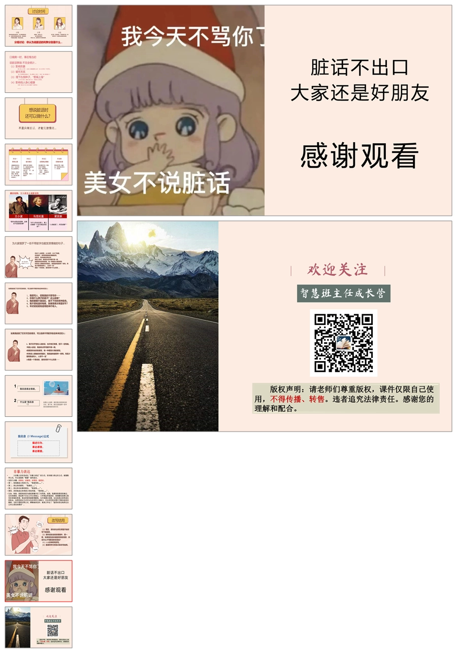 【8021】【文明礼仪】《脏话不出口,做个文明人》拒绝脏话不说脏话班会课件PPT
