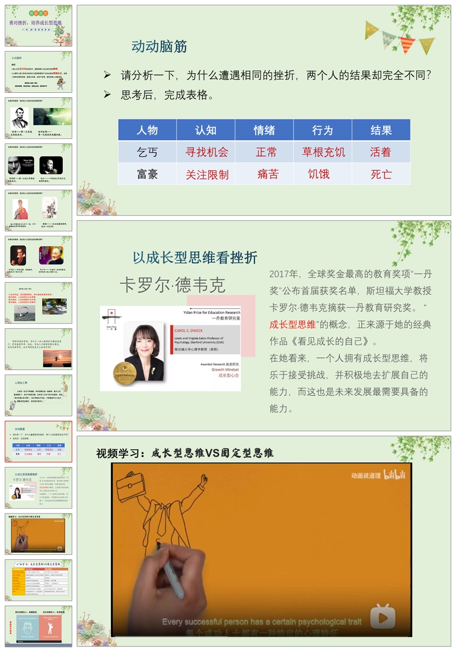 【8042】【挫折教育】《勇对挫折,培养成长型思维》PPT课件(课件+教案+视频)