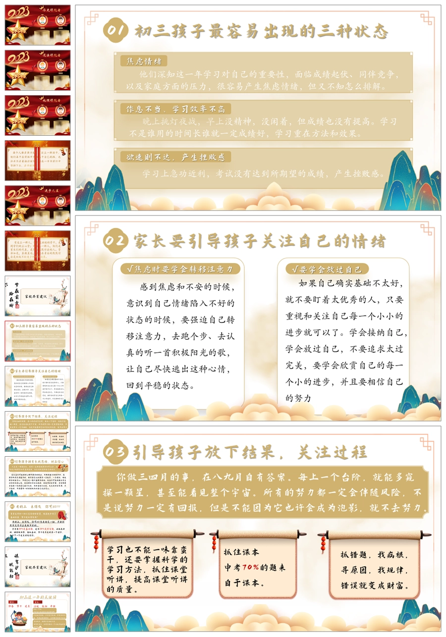 【8145】【九年级家长会】《一朝奋起鲲鹏翅,直上青云啸九天》九年级期中家长会PPT(课件+逐字稿)