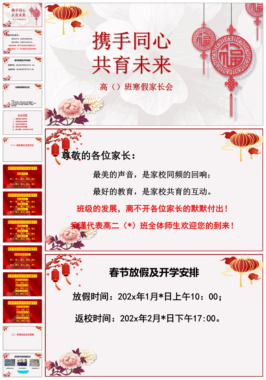 【8178】【寒假家长会】《携手同心共育未来》寒假学生家长会PPT课件(课件+讲稿)