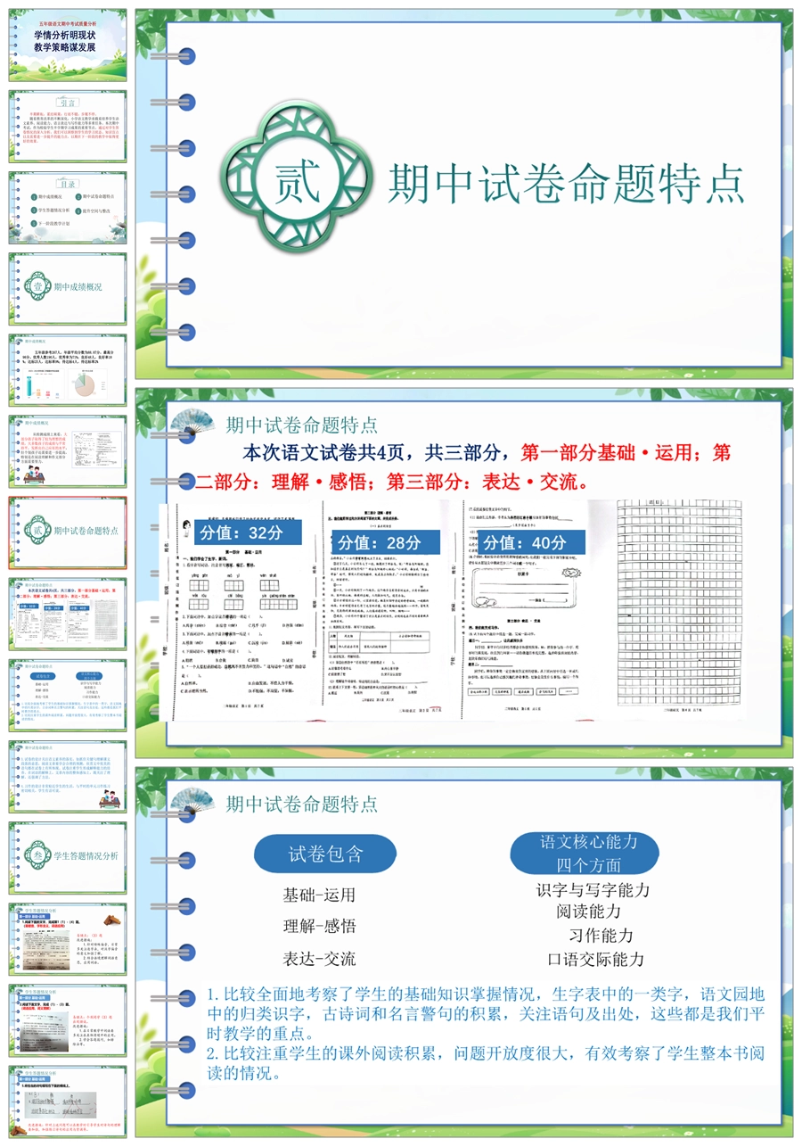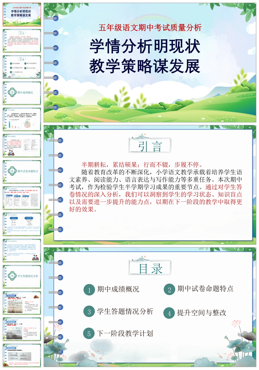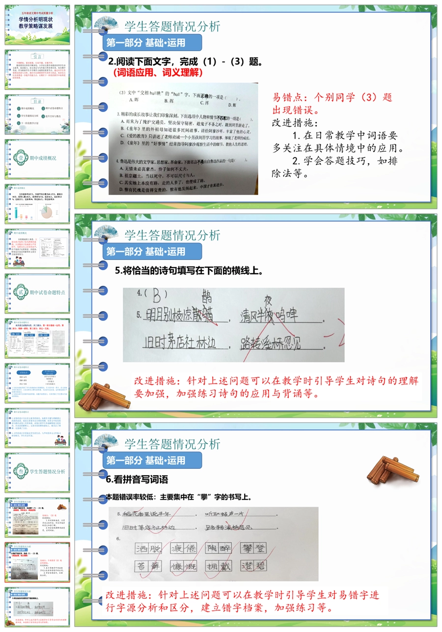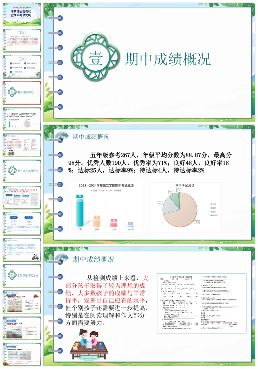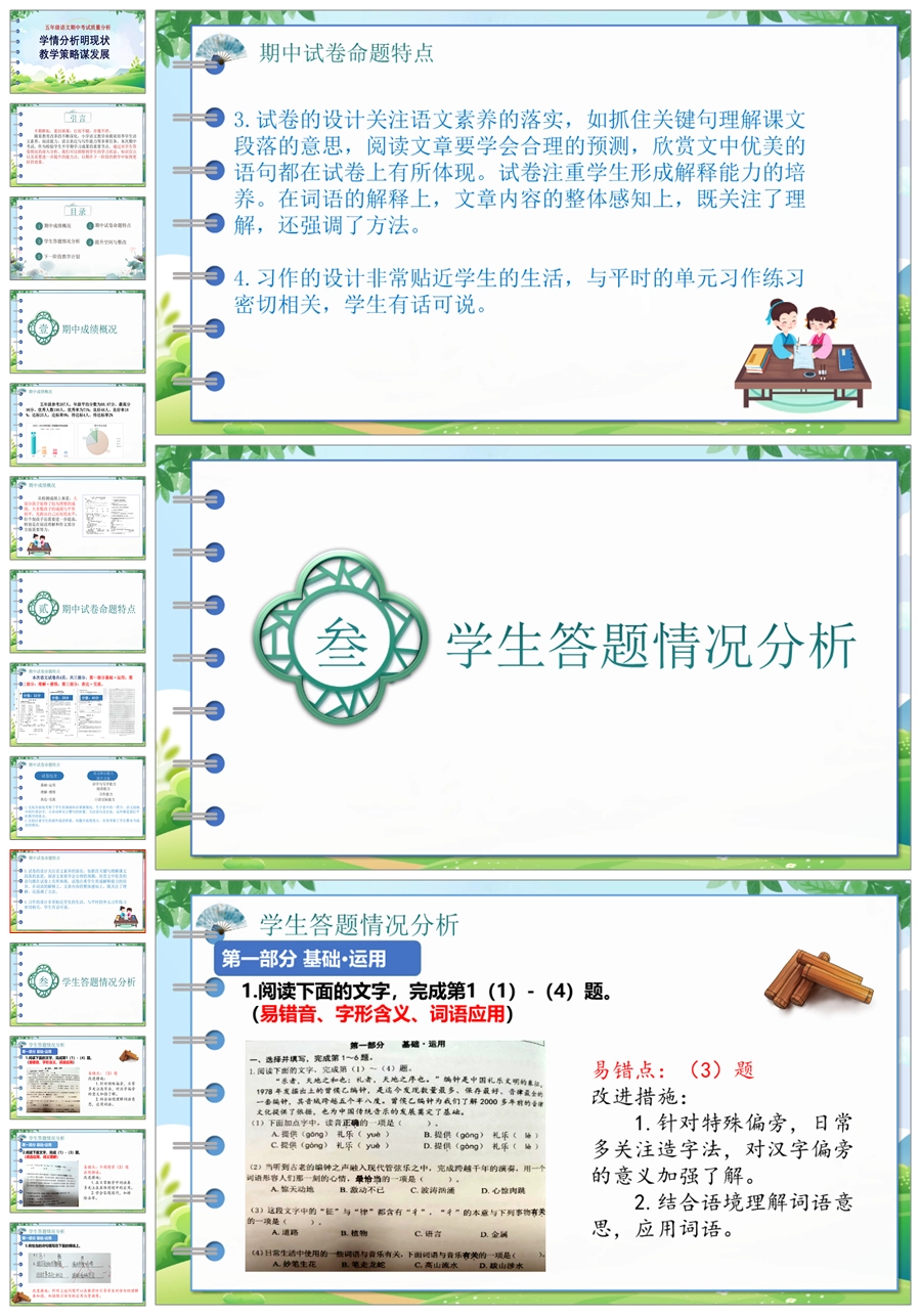 【8189】【质量分析】《学情分析明现状教学策略谋发展》五年级语文期中考试质量分析PPT(课件+讲稿)
