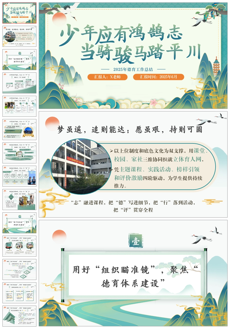 【8437】学校德育工作总结《少年应有鸿鹄志》ppt课件+配套发言稿