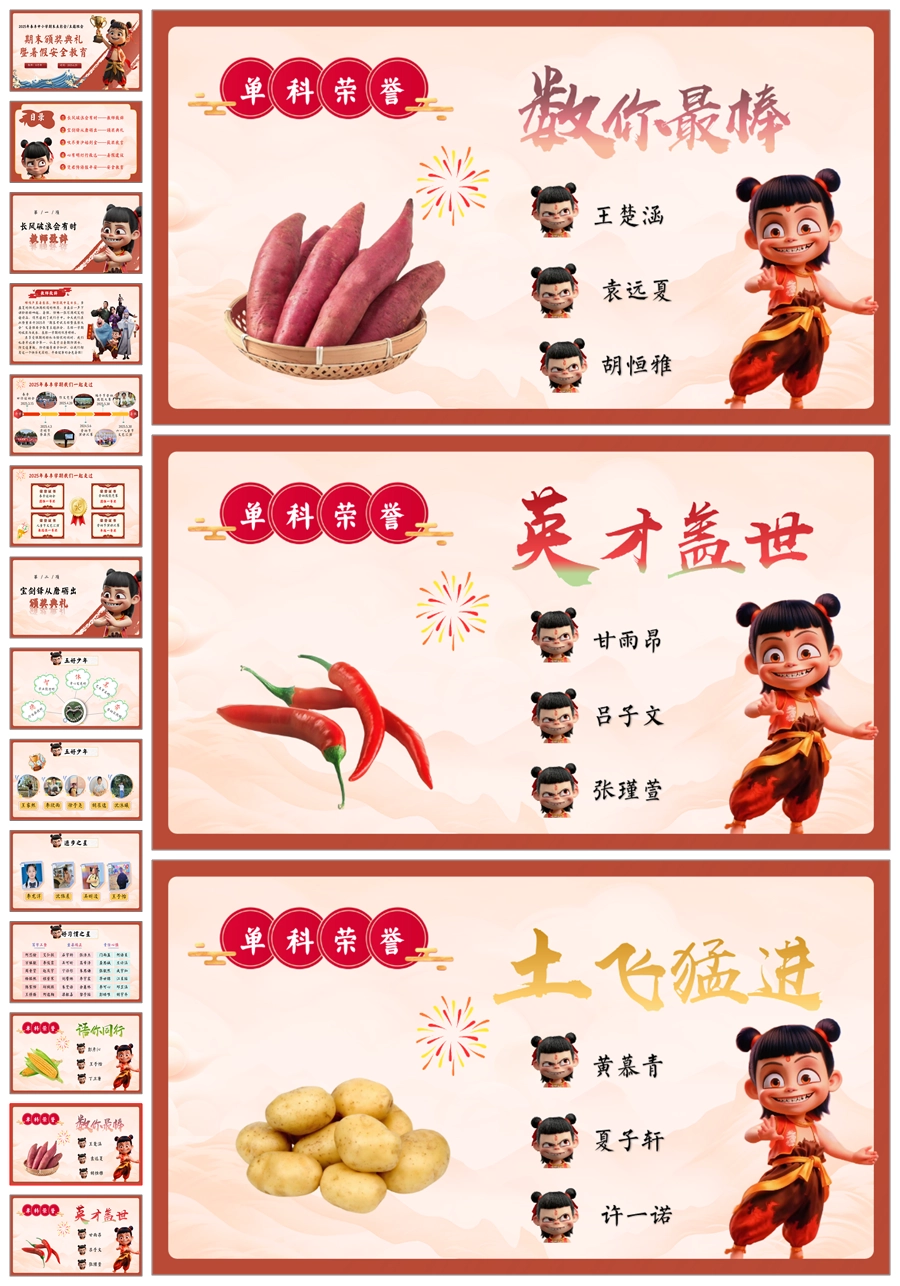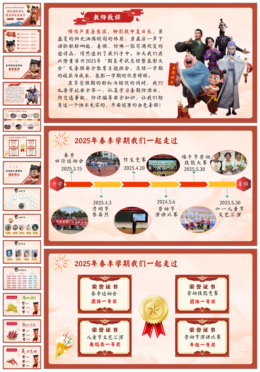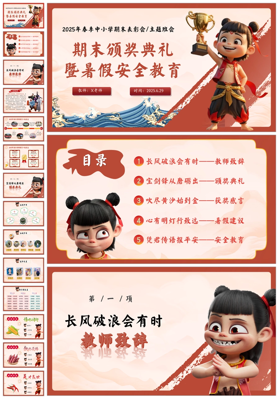 【8442】暑假期末颁奖表彰大会及暑假安全教育PPT《哪吒封神,榜样闪耀》ppt课件+配套发言稿