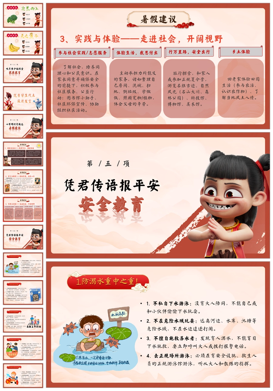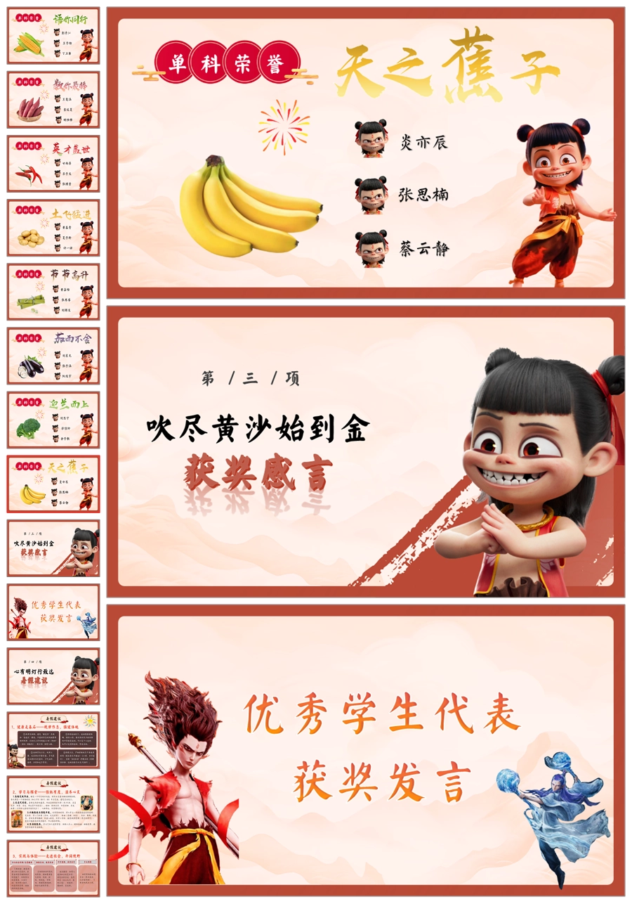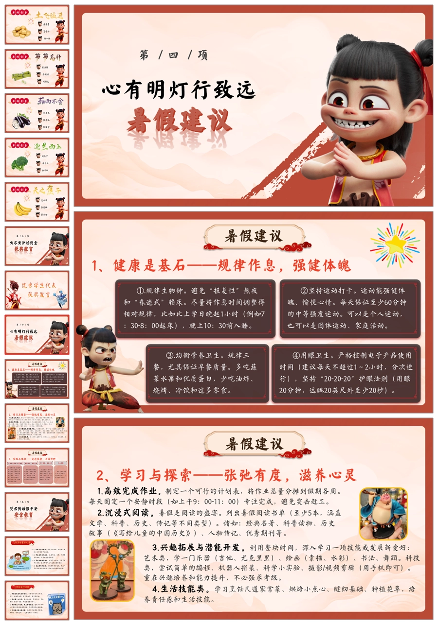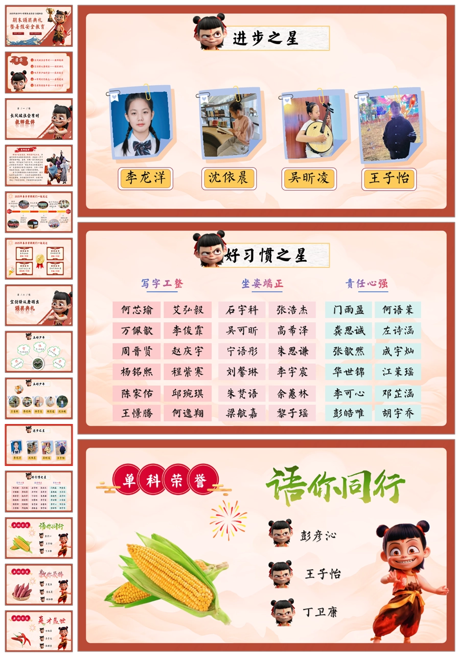 【8442】暑假期末颁奖表彰大会及暑假安全教育PPT《哪吒封神,榜样闪耀》ppt课件+配套发言稿