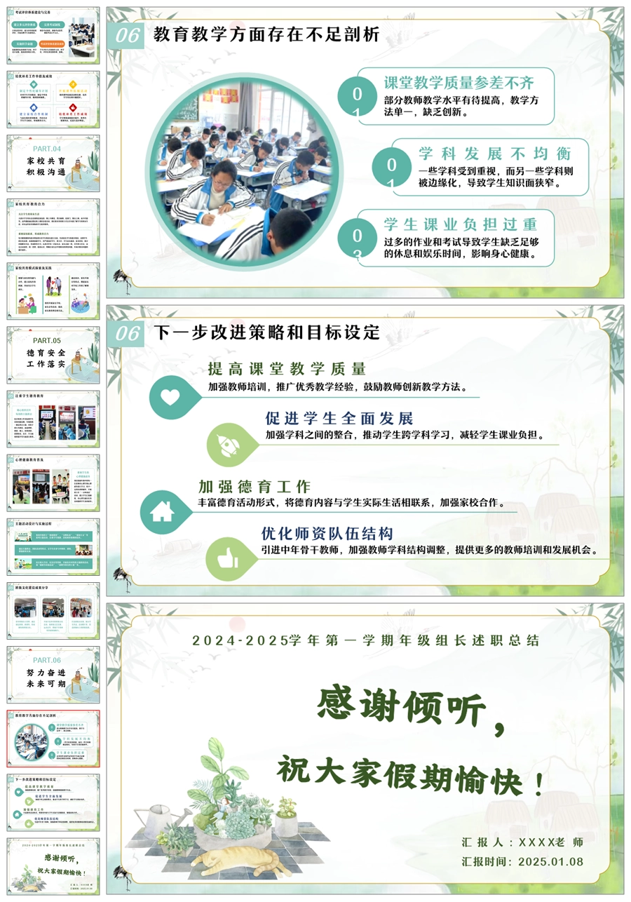 【8451】【工作总结】《规范管理提质量》年级组长期末工作总结PPT课件+发言稿